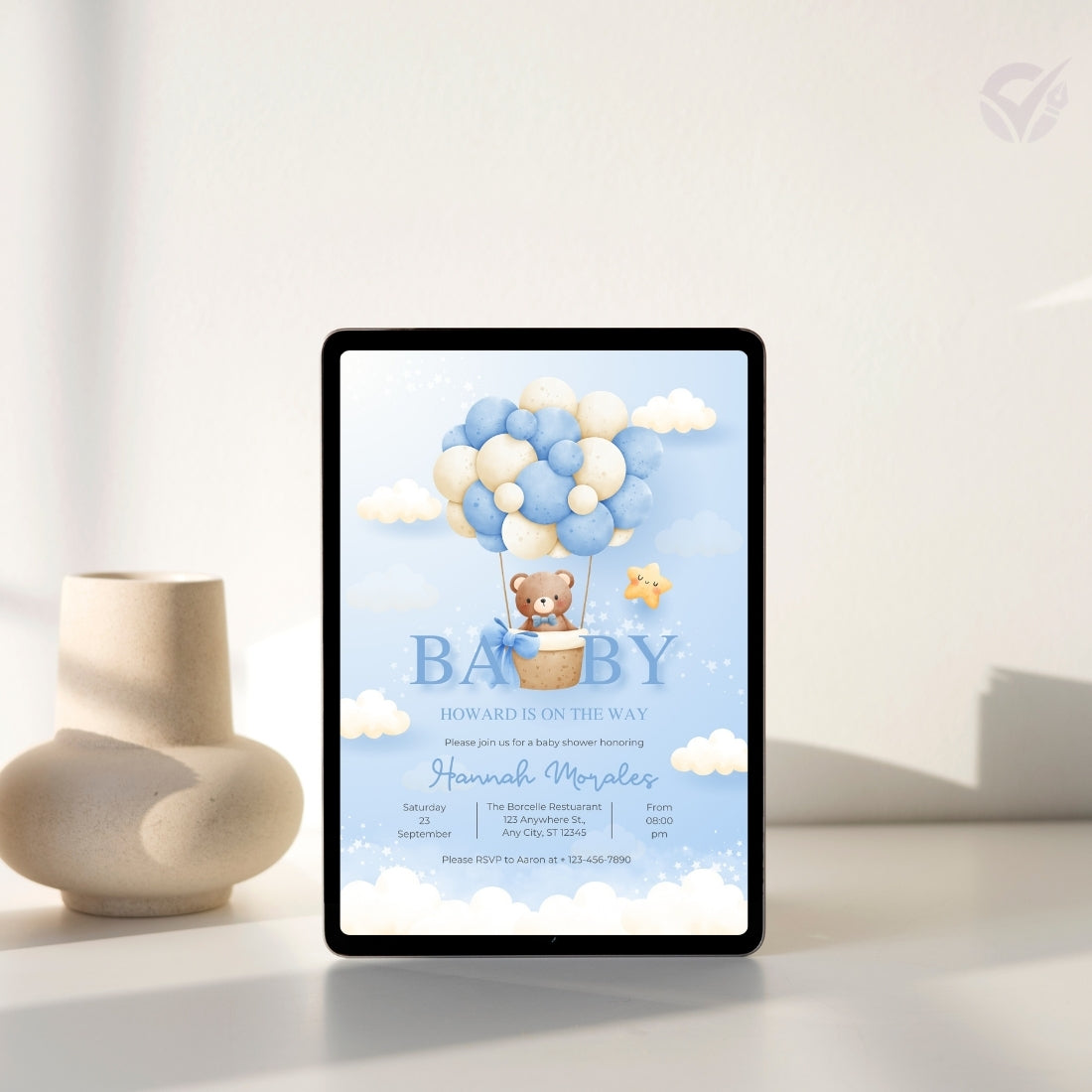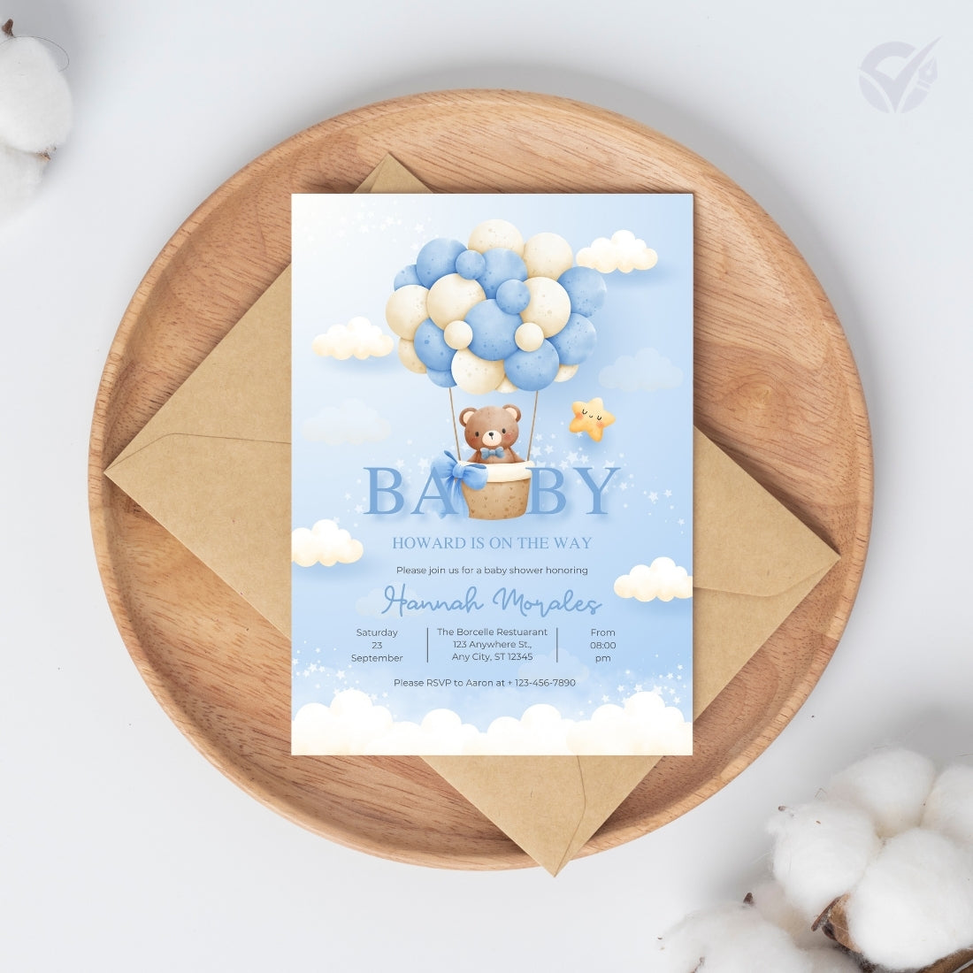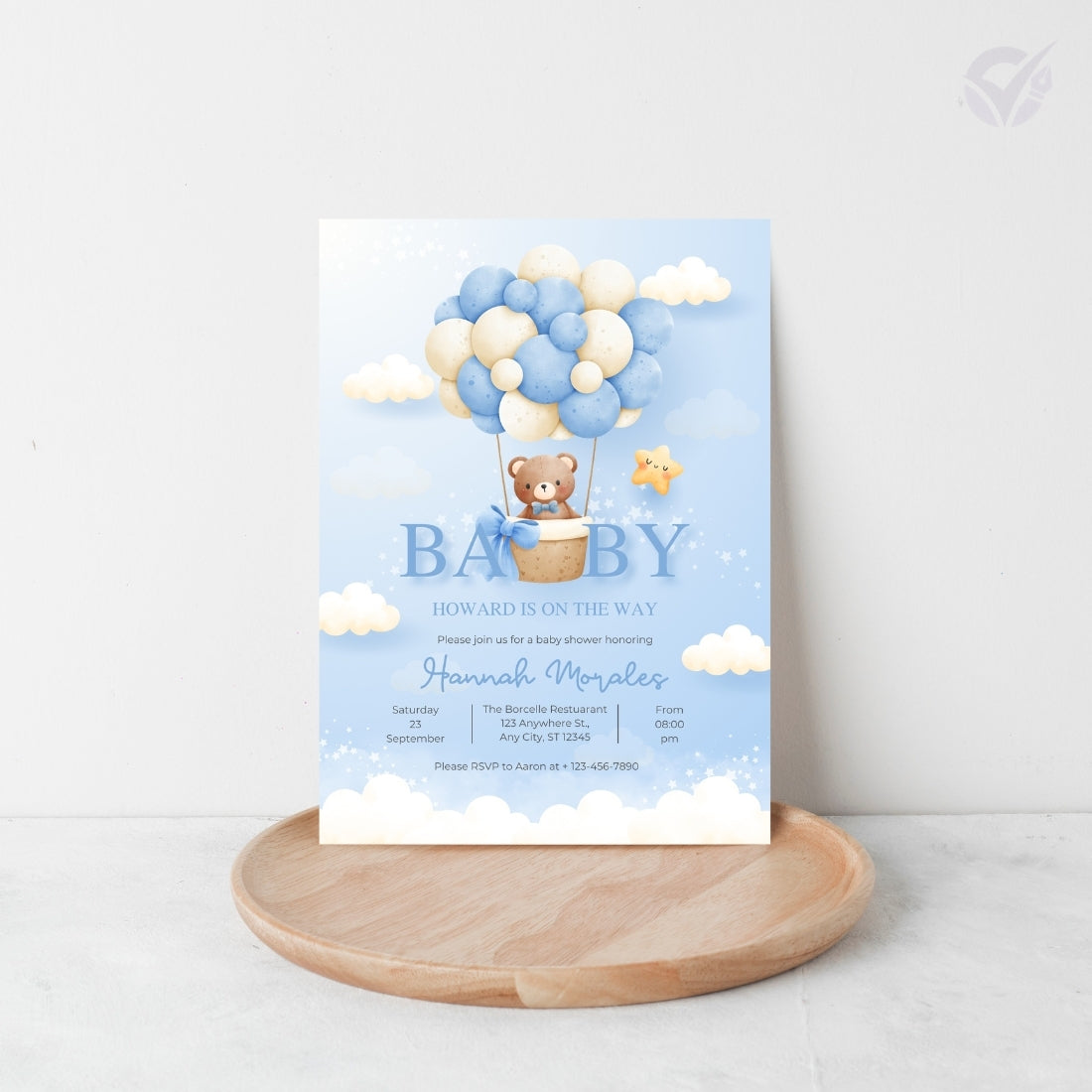 Baby Balloon Baby Shower Invitation Editable Canva Template Hot Air Balloon Baby Shower Invite Instant Digital Download