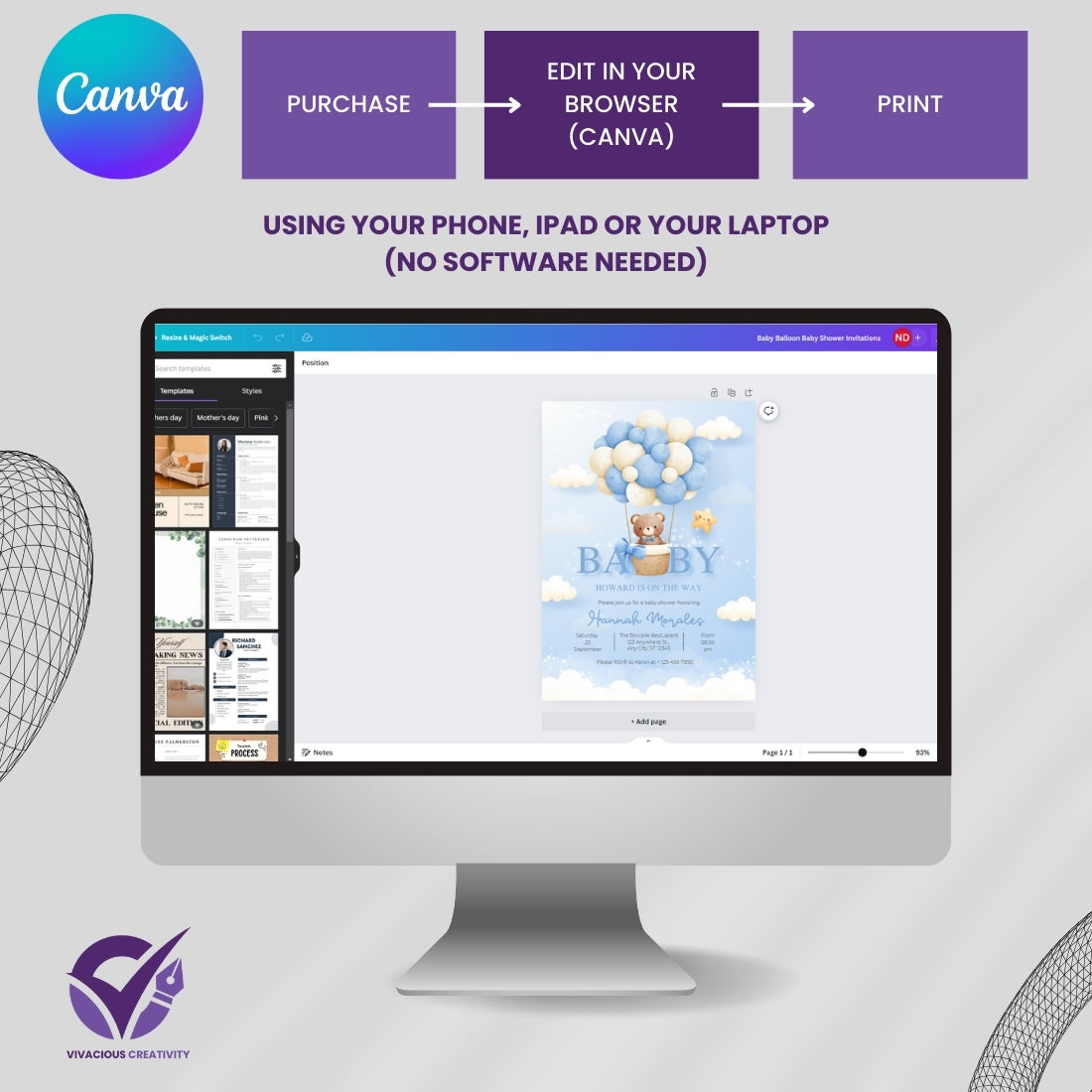 Fully editable in Canva, this design allows you to customize every detail with ease — no Pro account or design experience needed. 🎈☁️👶