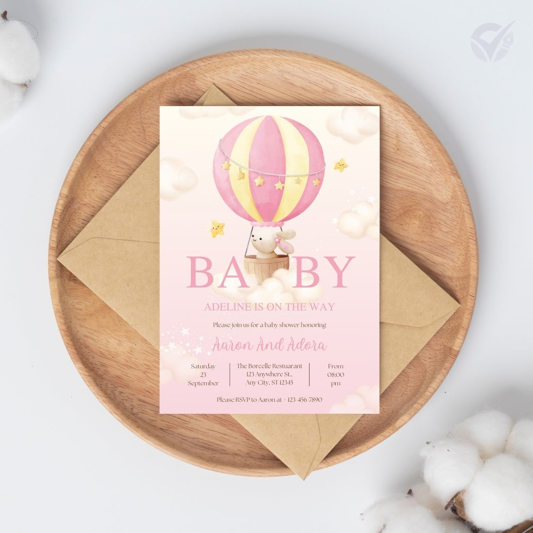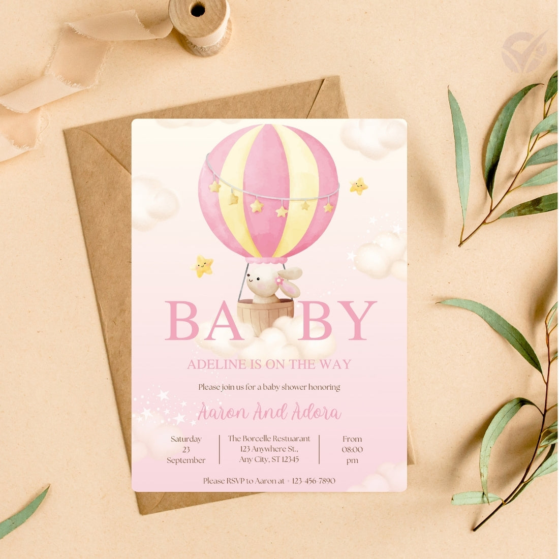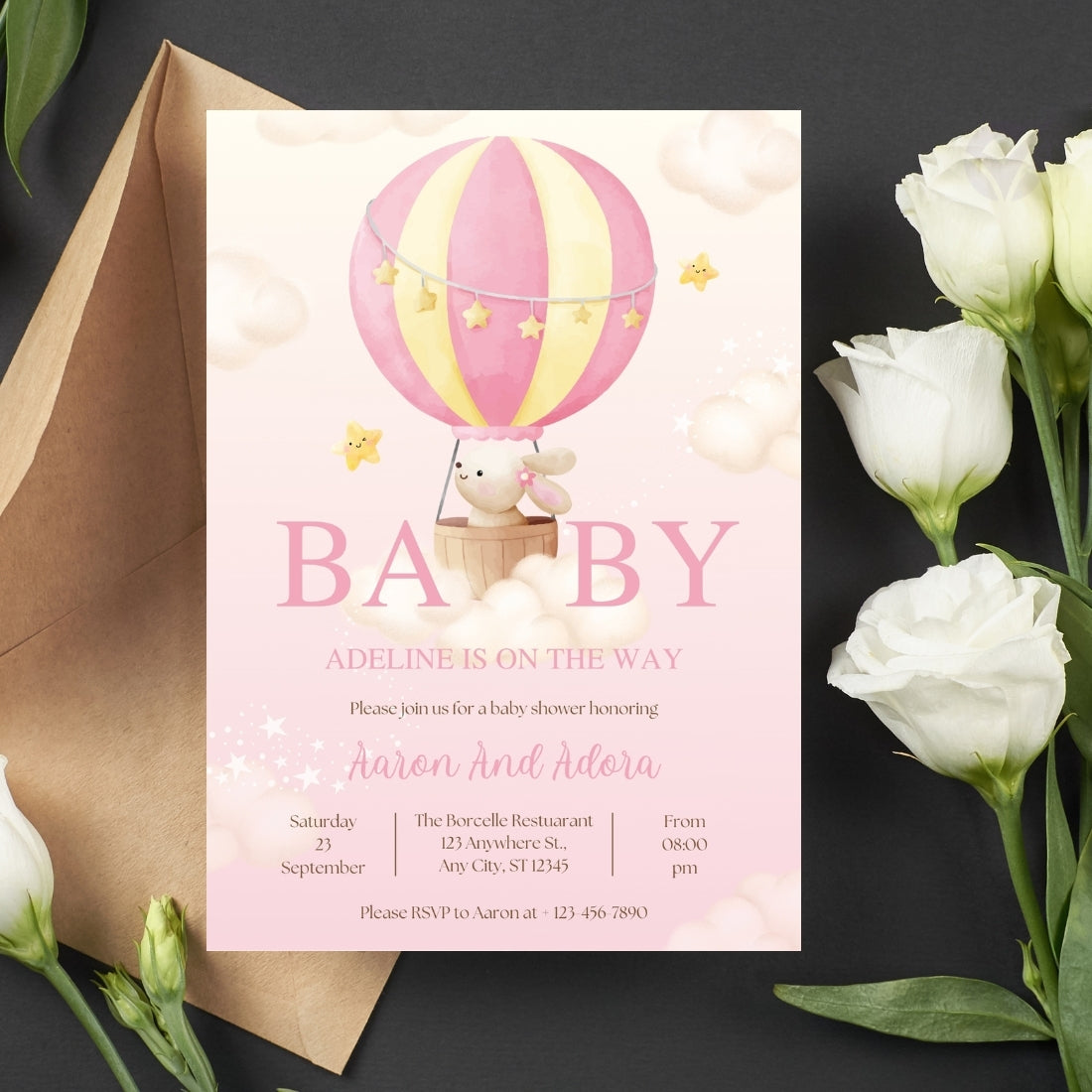 Designed with soft pink tones, floral accents, and modern fonts, this invitation is perfect for a dreamy, feminine baby shower. Whether you’re planning a garden brunch, a tea party, or a cozy celebration at home — this design brings charm and joy to your special day.
