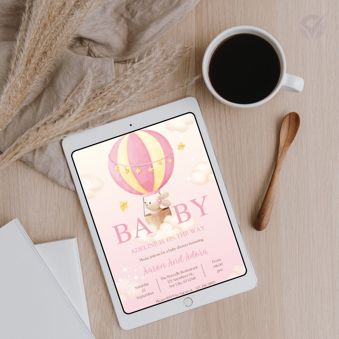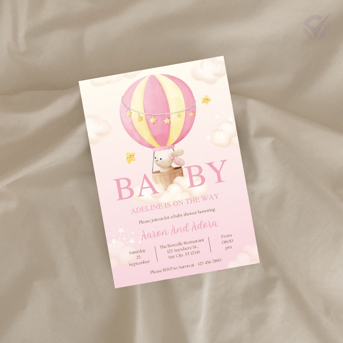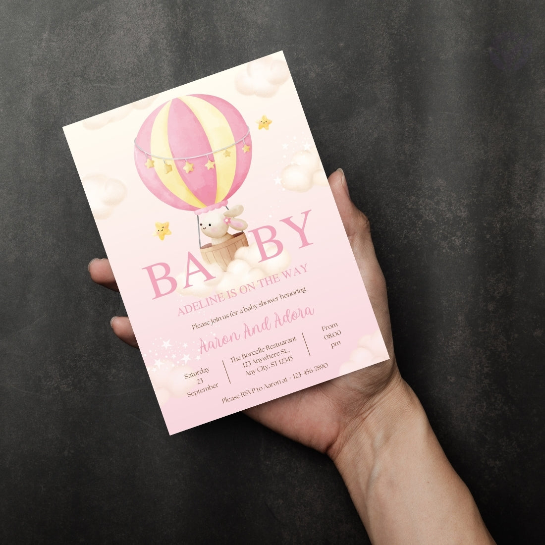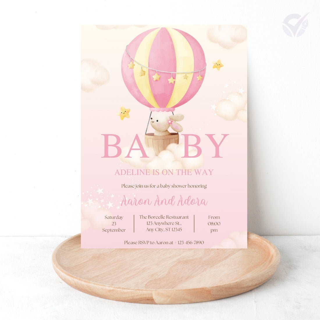 Designed with soft pink tones, floral accents, and modern fonts, this invitation is perfect for a dreamy, feminine baby shower. Whether you’re planning a garden brunch, a tea party, or a cozy celebration at home — this design brings charm and joy to your special day.