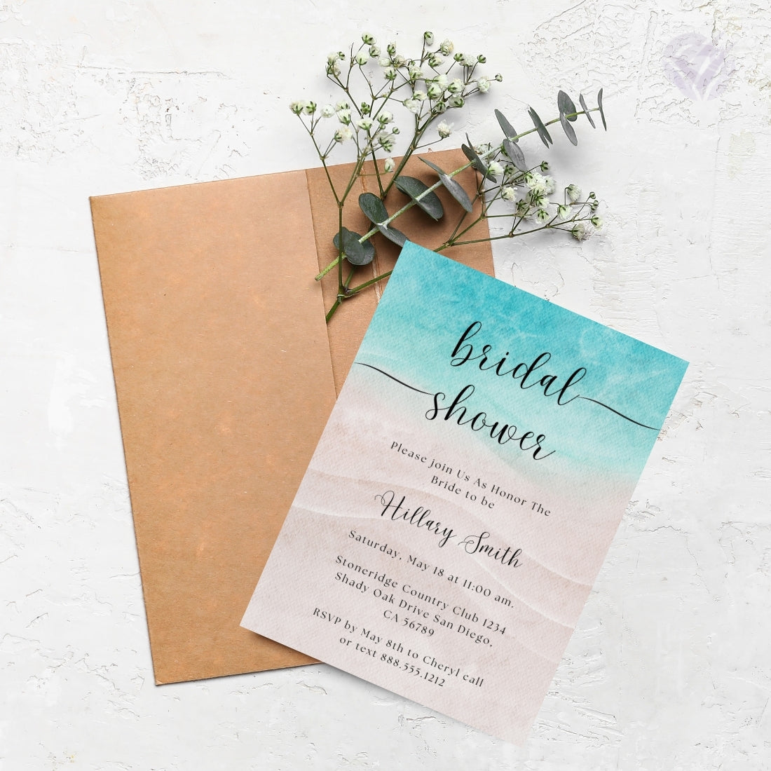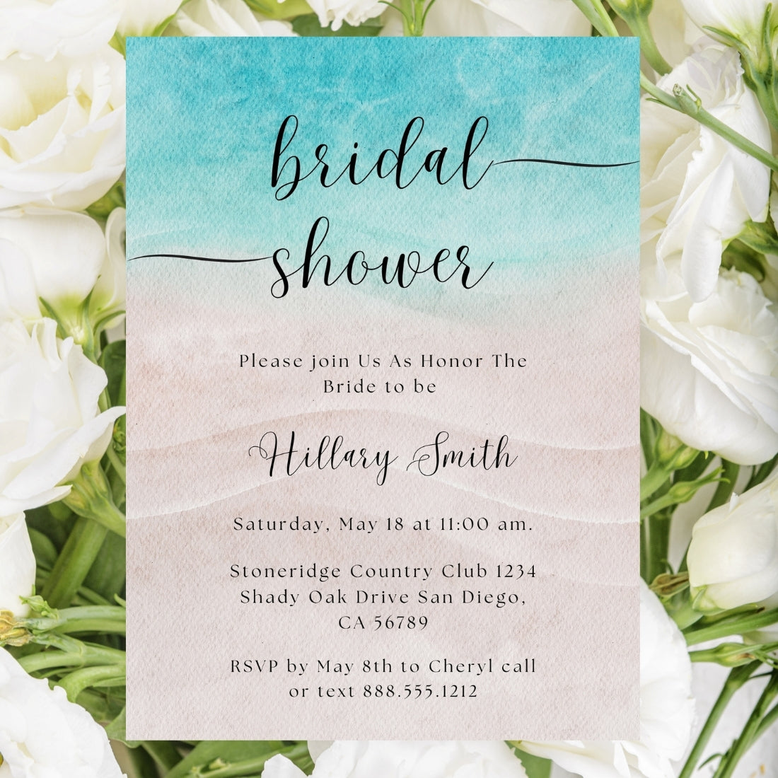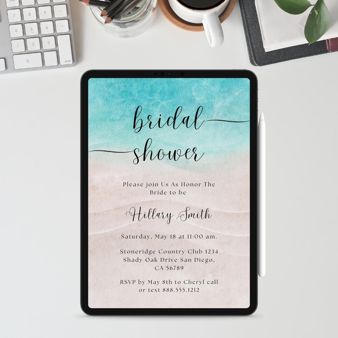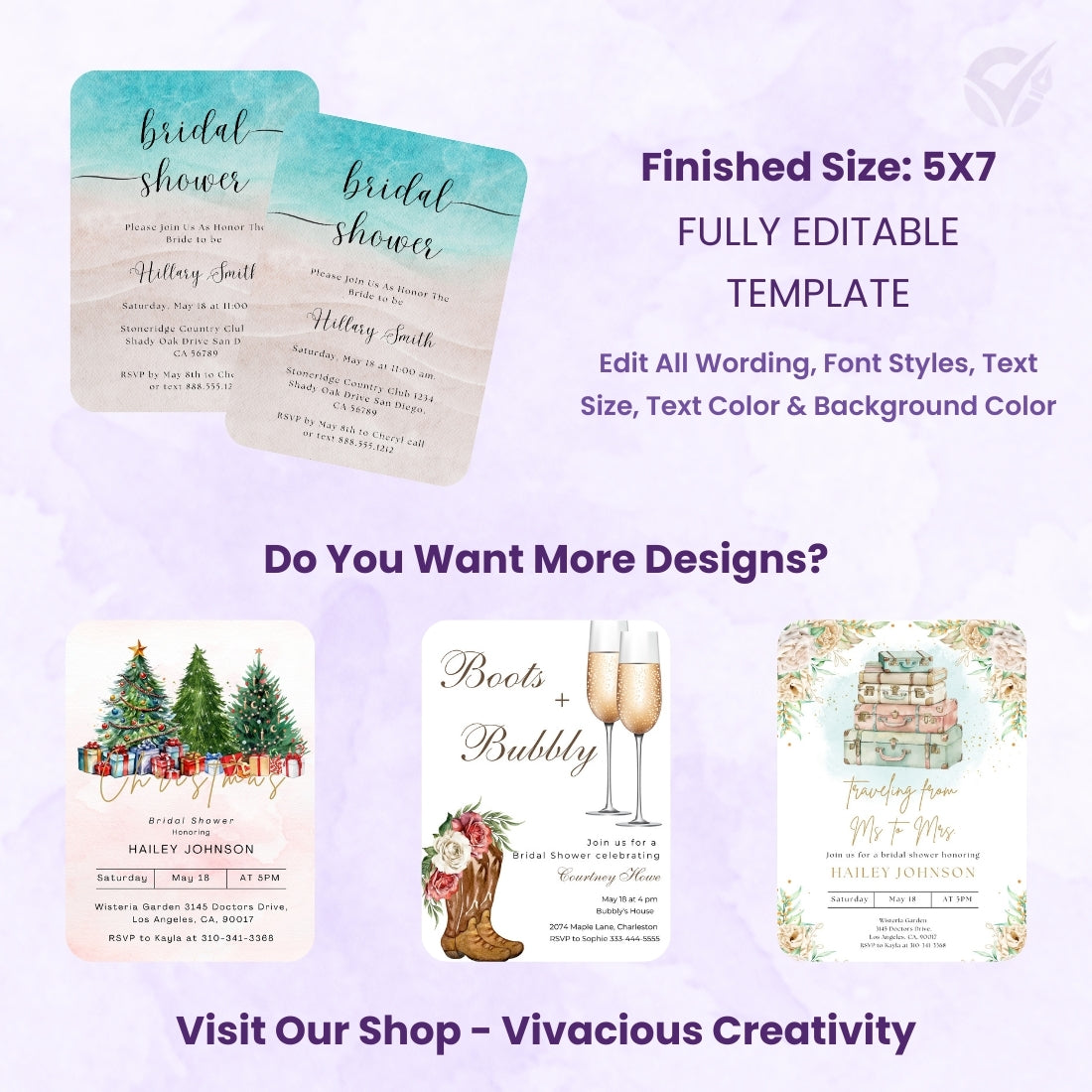 Beach Theme Bridal Shower Invitations Editable Canva Template Digital Download