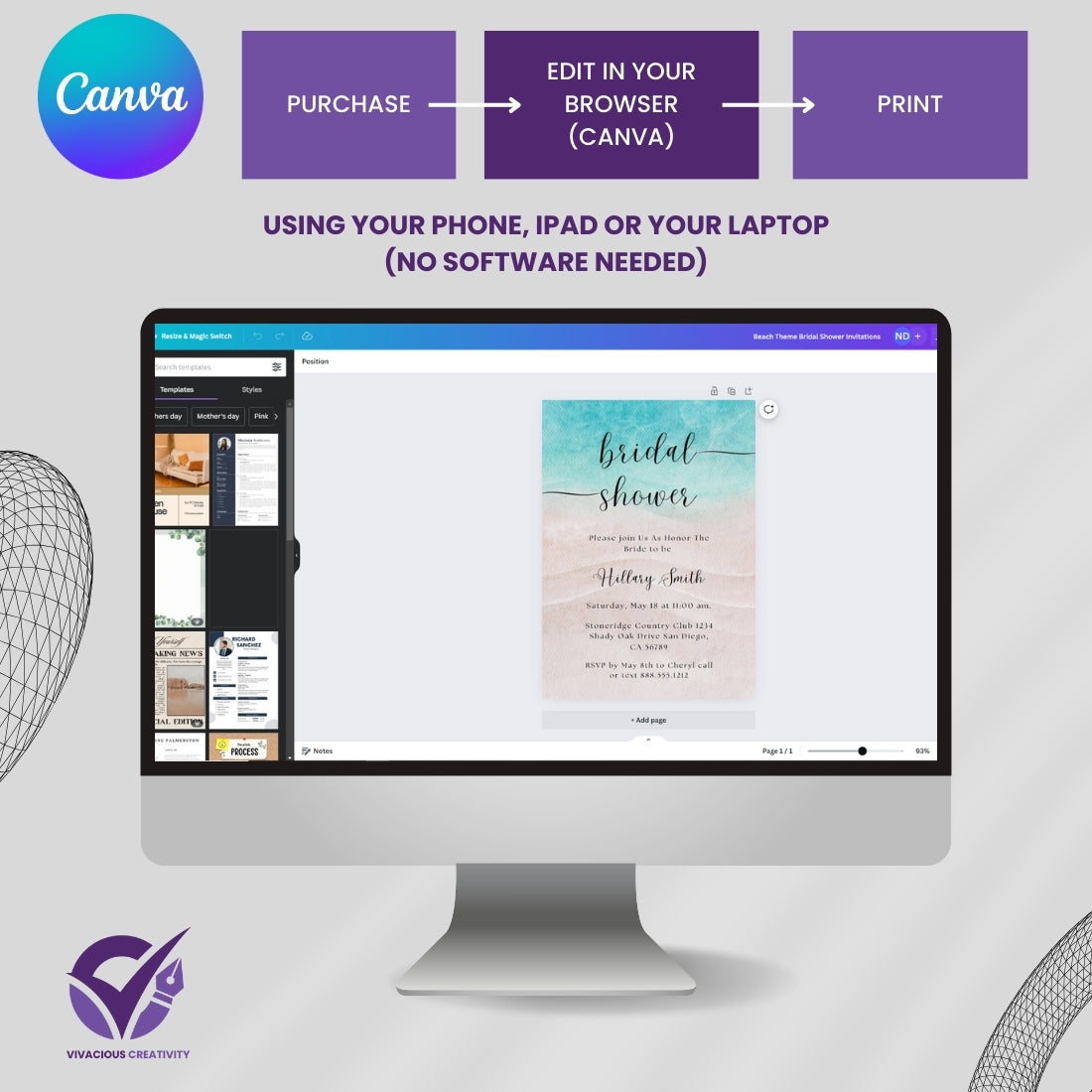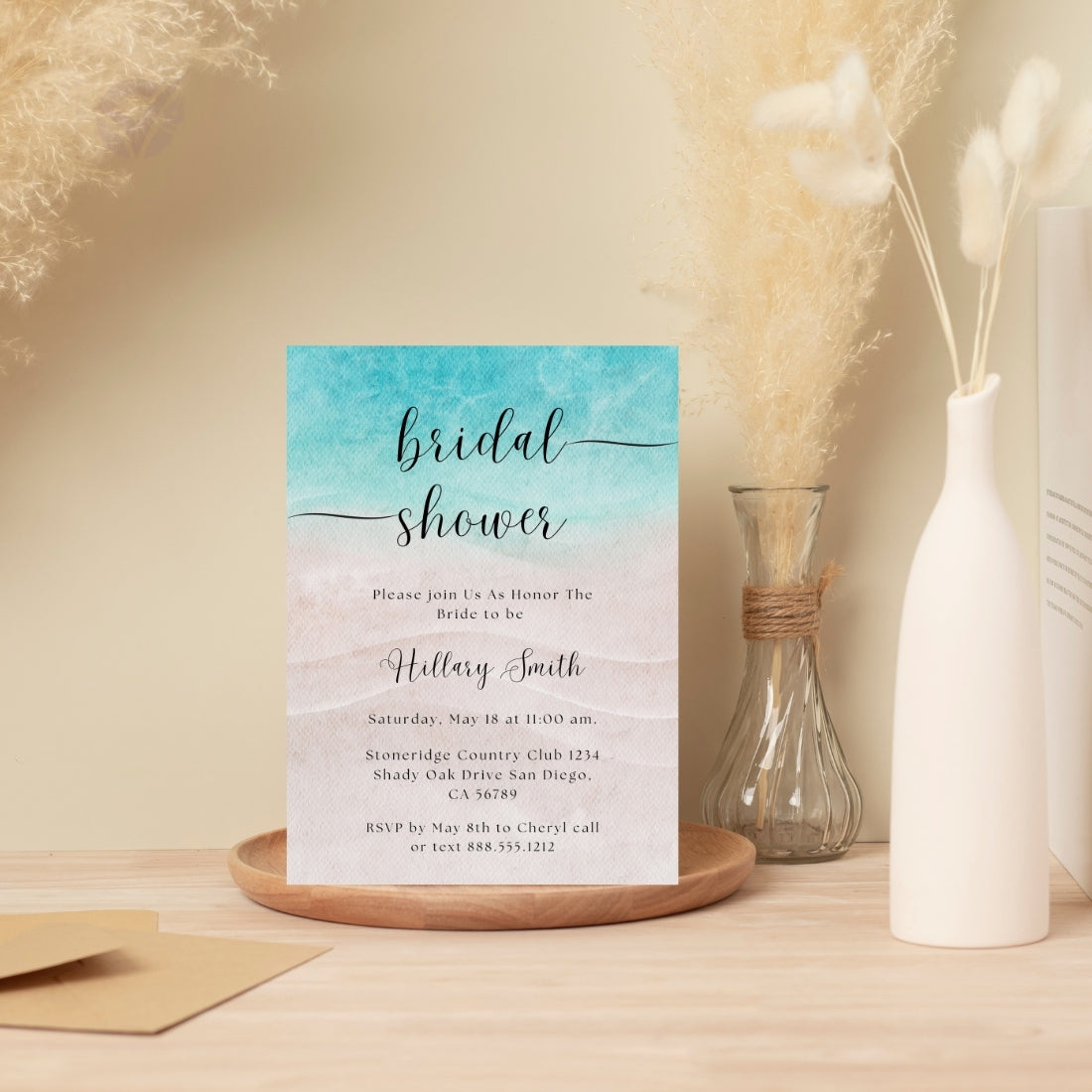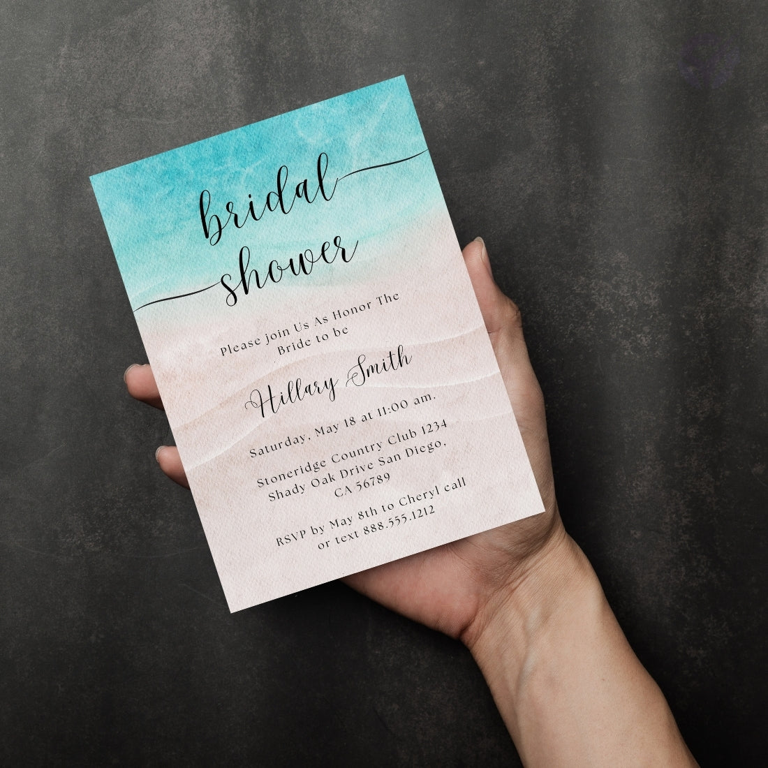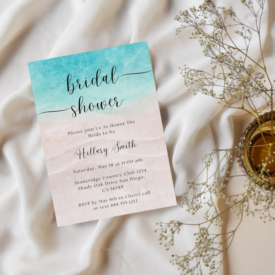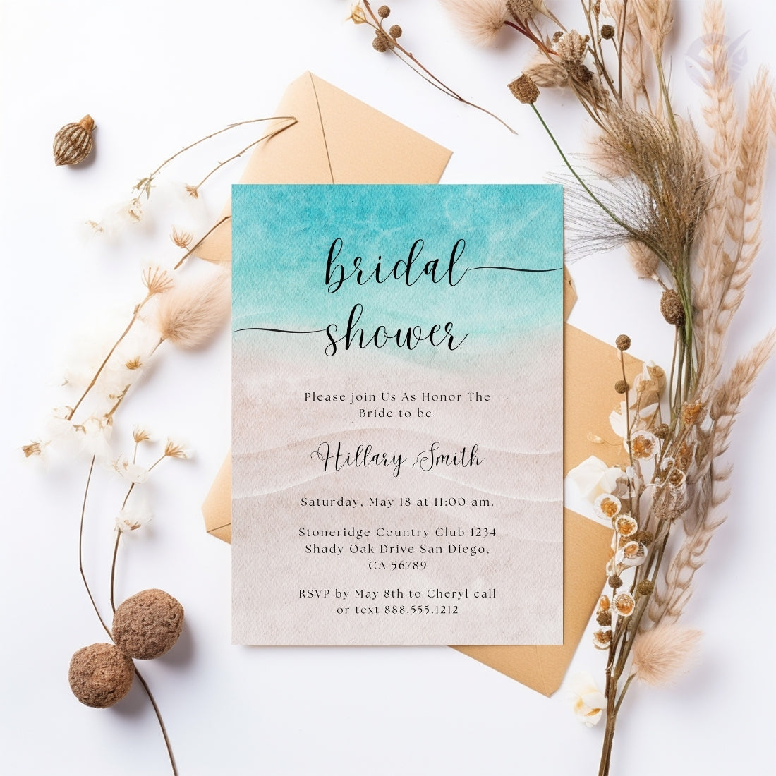 Beach Theme Bridal Shower Invitations Editable Canva Template Digital Download