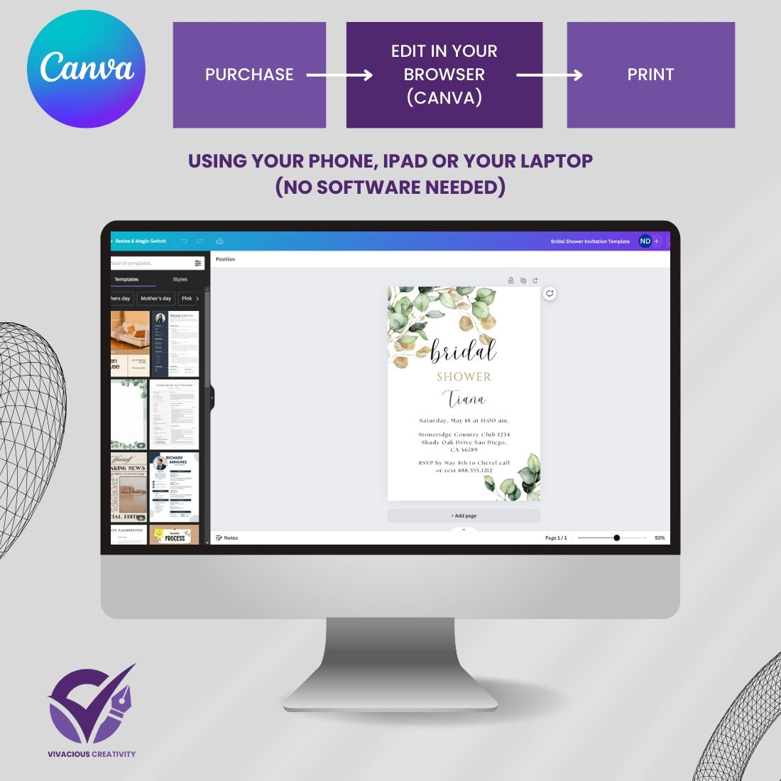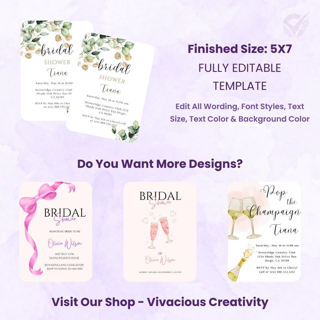 Bridal Shower Invitation Template Editable Canva Design Digital Download