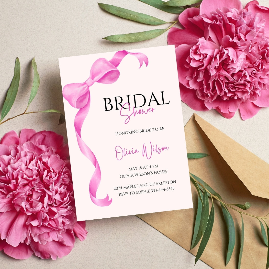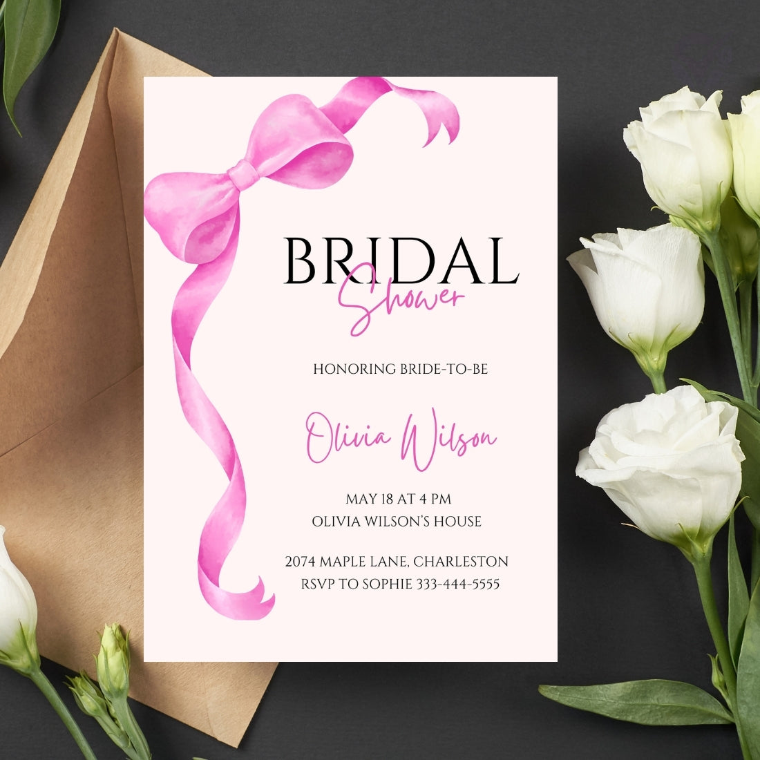 1 Editable Bridal Shower Invitation Template (5x7 in, Portrait)