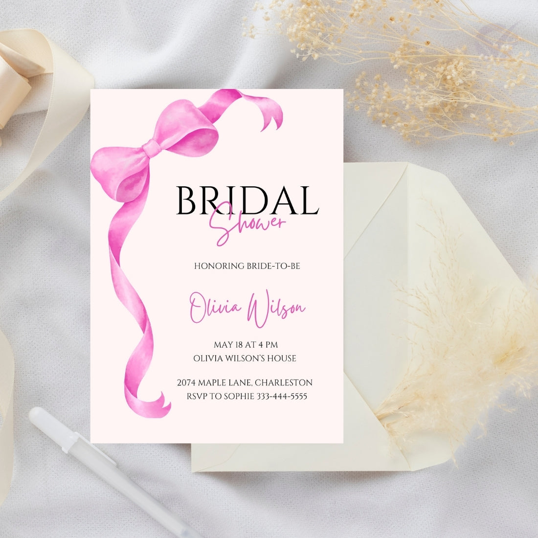 Bridal Shower Invitation Wording Editable Canva Template 1-Page Digital Download