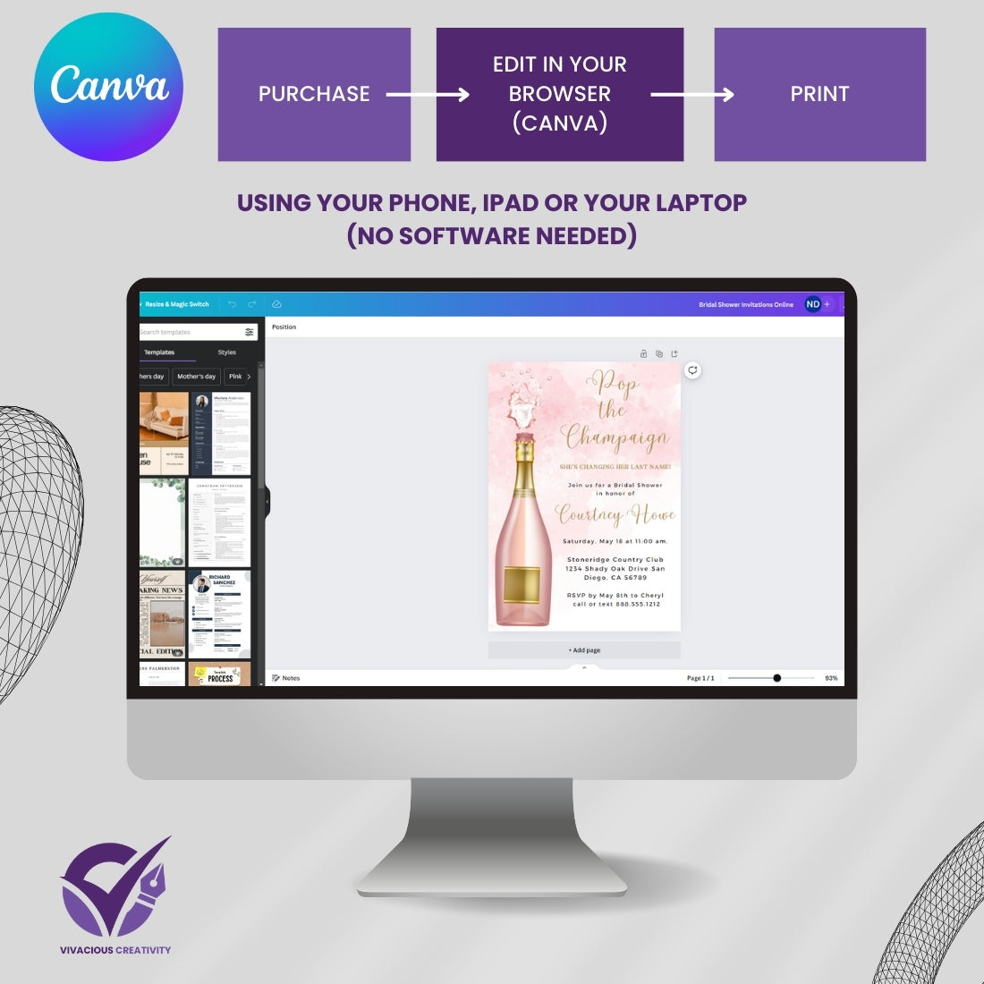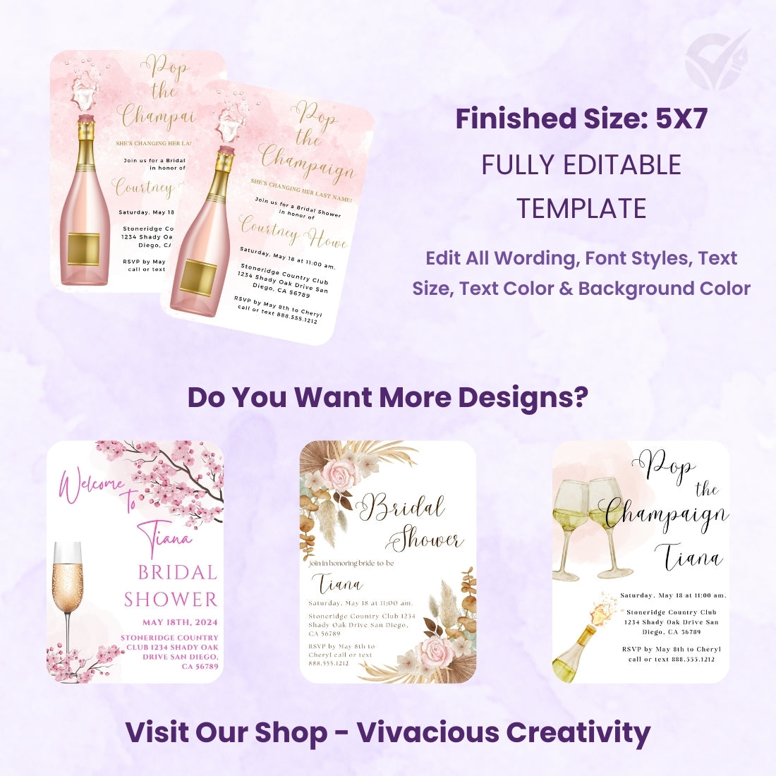 Bridal Shower Invitations Online Editable Canva Template 1-Page Digital Download