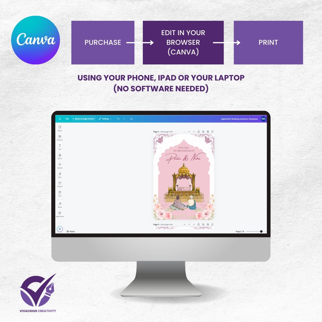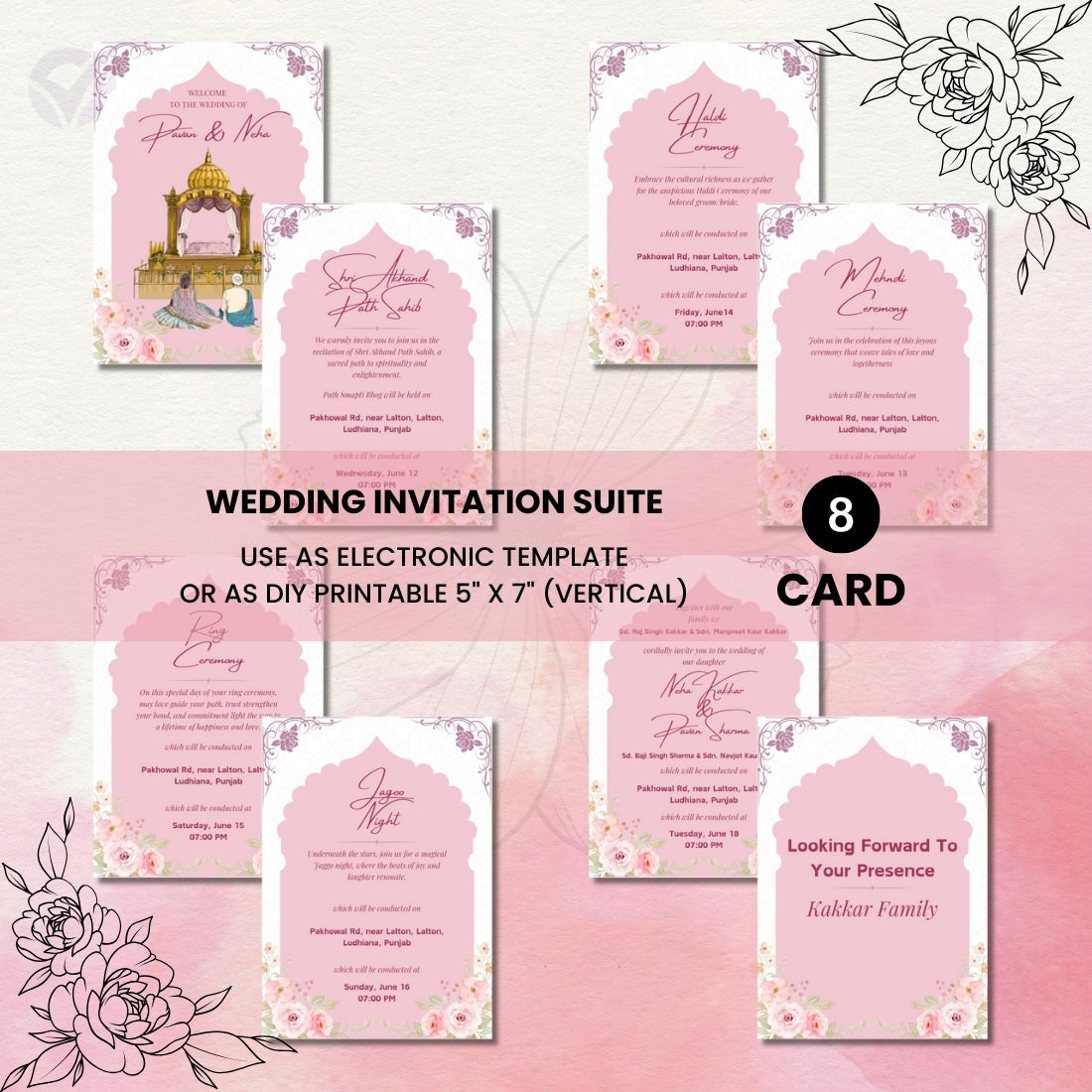 Digital Sikh Wedding Invitation Templates 8 Page Editable Canva Suite Punjabi Wedding Card Set