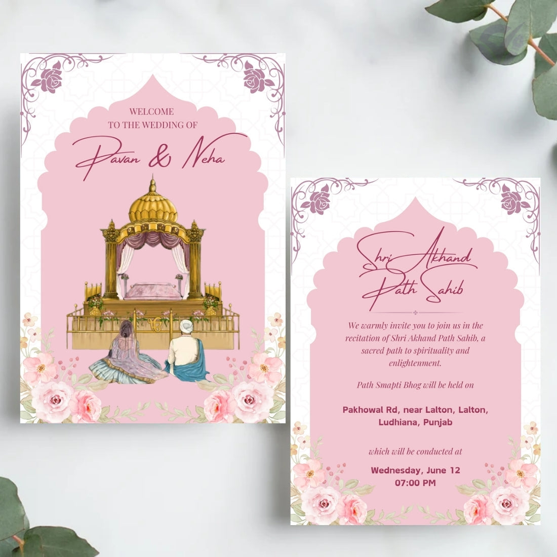 Announce your sacred Anand Karaj with elegance using our Digital Sikh Wedding Invitation Templates – a beautifully crafted 8-page Canva template suite that captures the essence of Punjabi culture and modern design. Perfect for couples seeking a graceful and customizable invitation set, this digital product is ideal for both printing and online sharing.