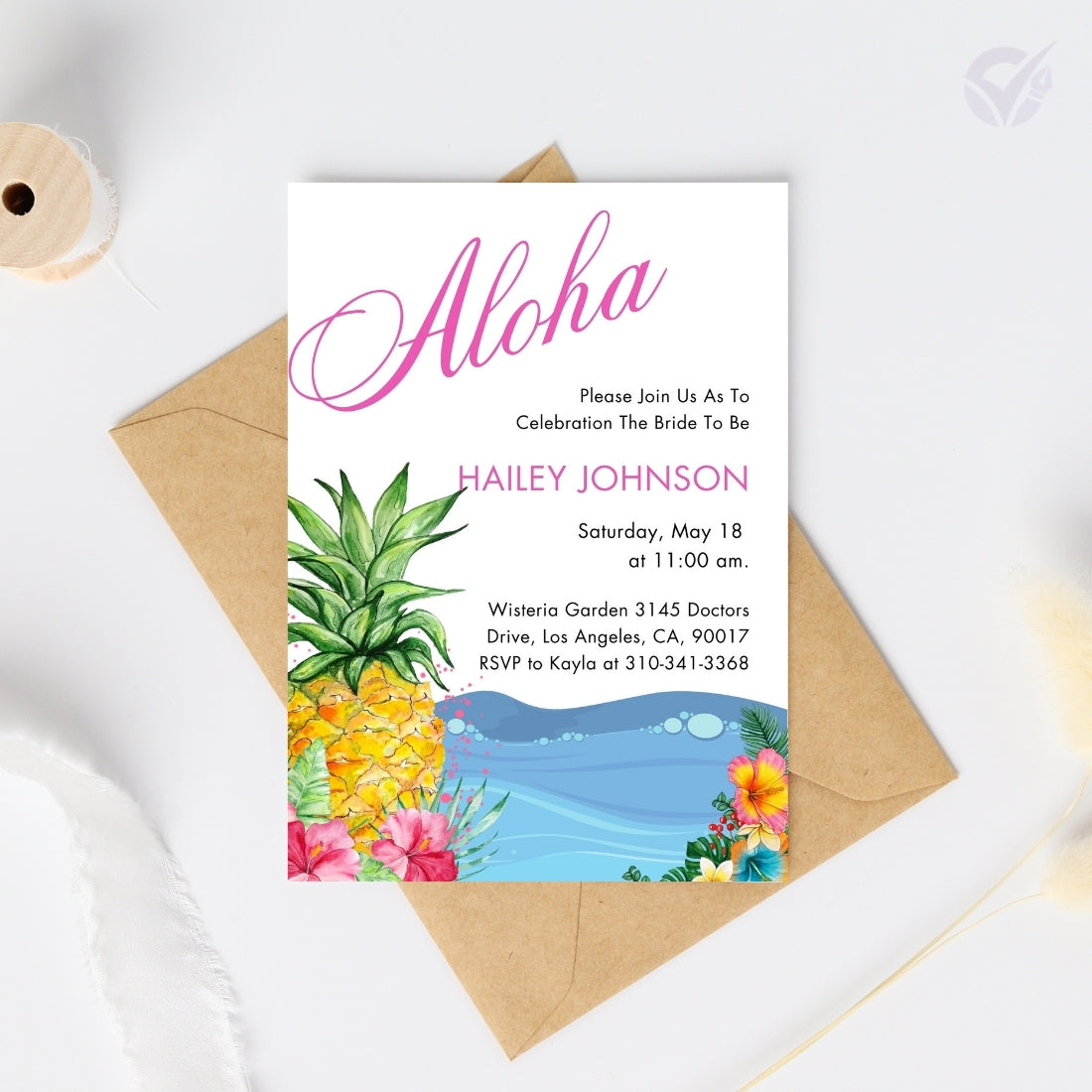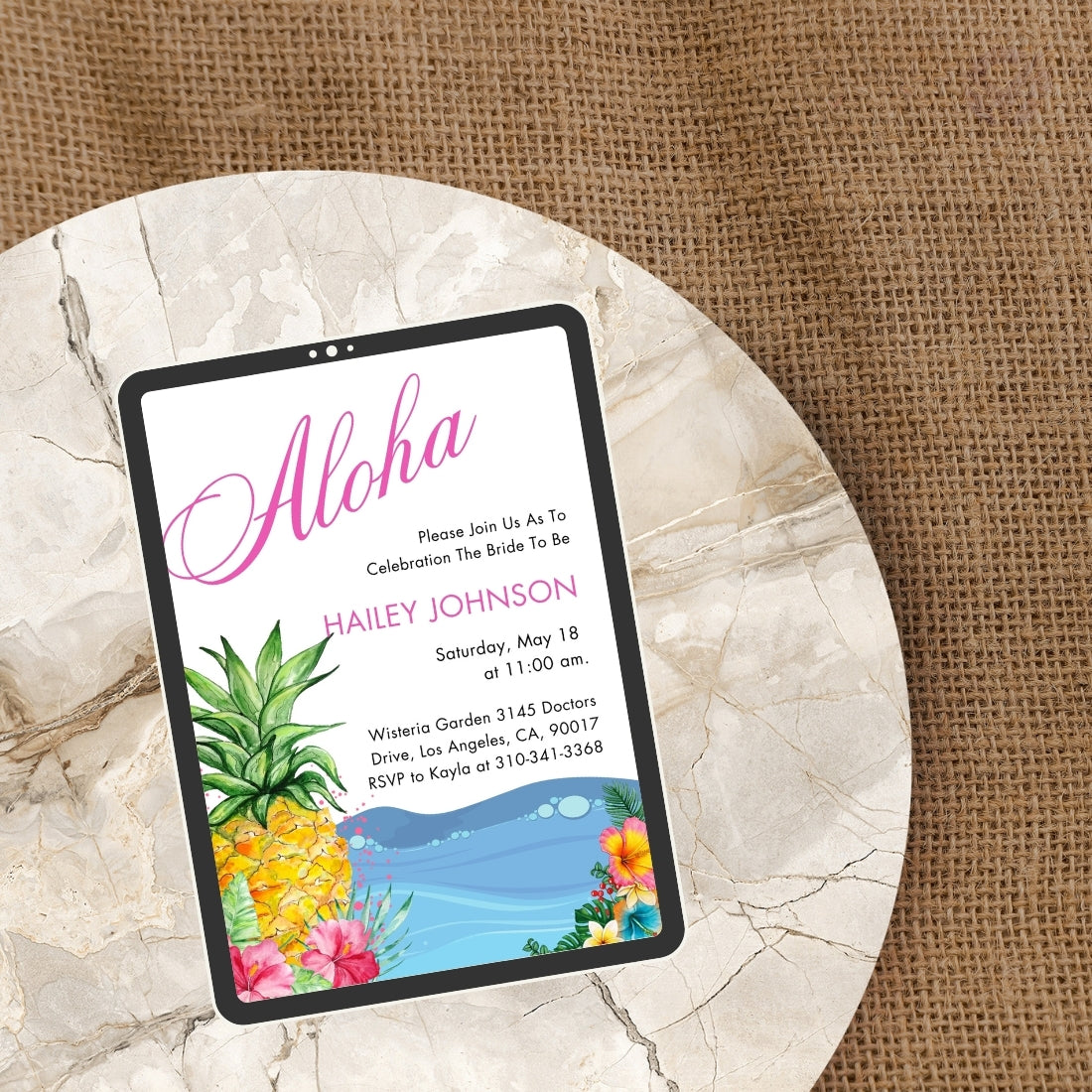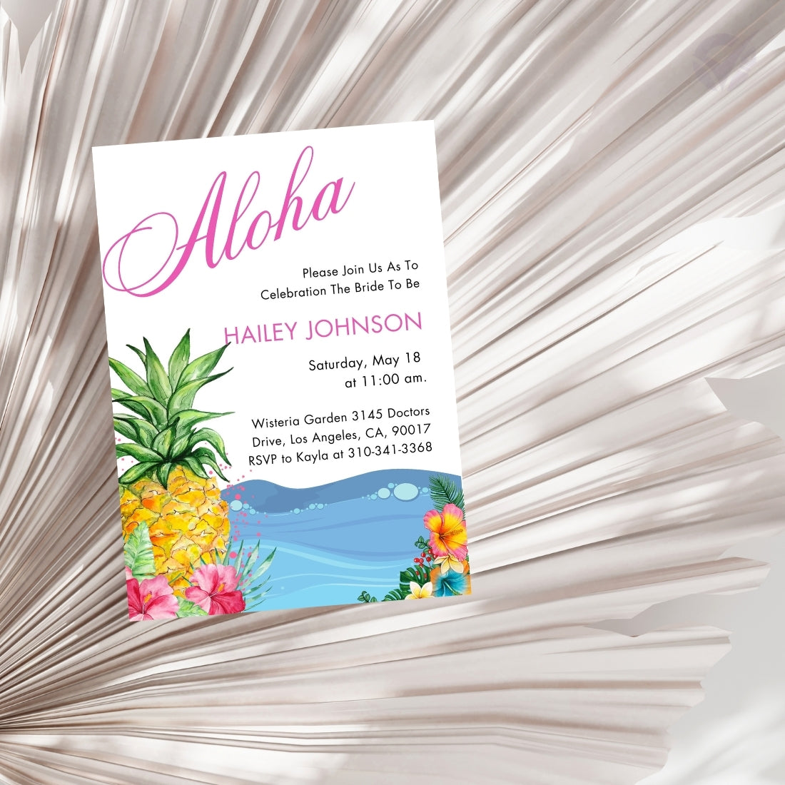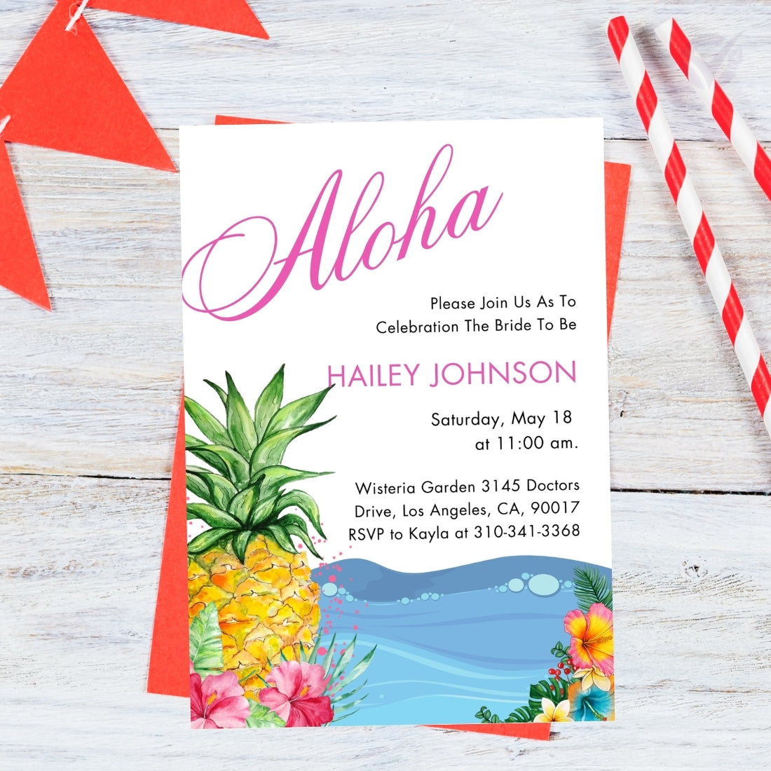 Hawaiian Themed Bridal Shower Invitations Editable Canva Template Digital Download