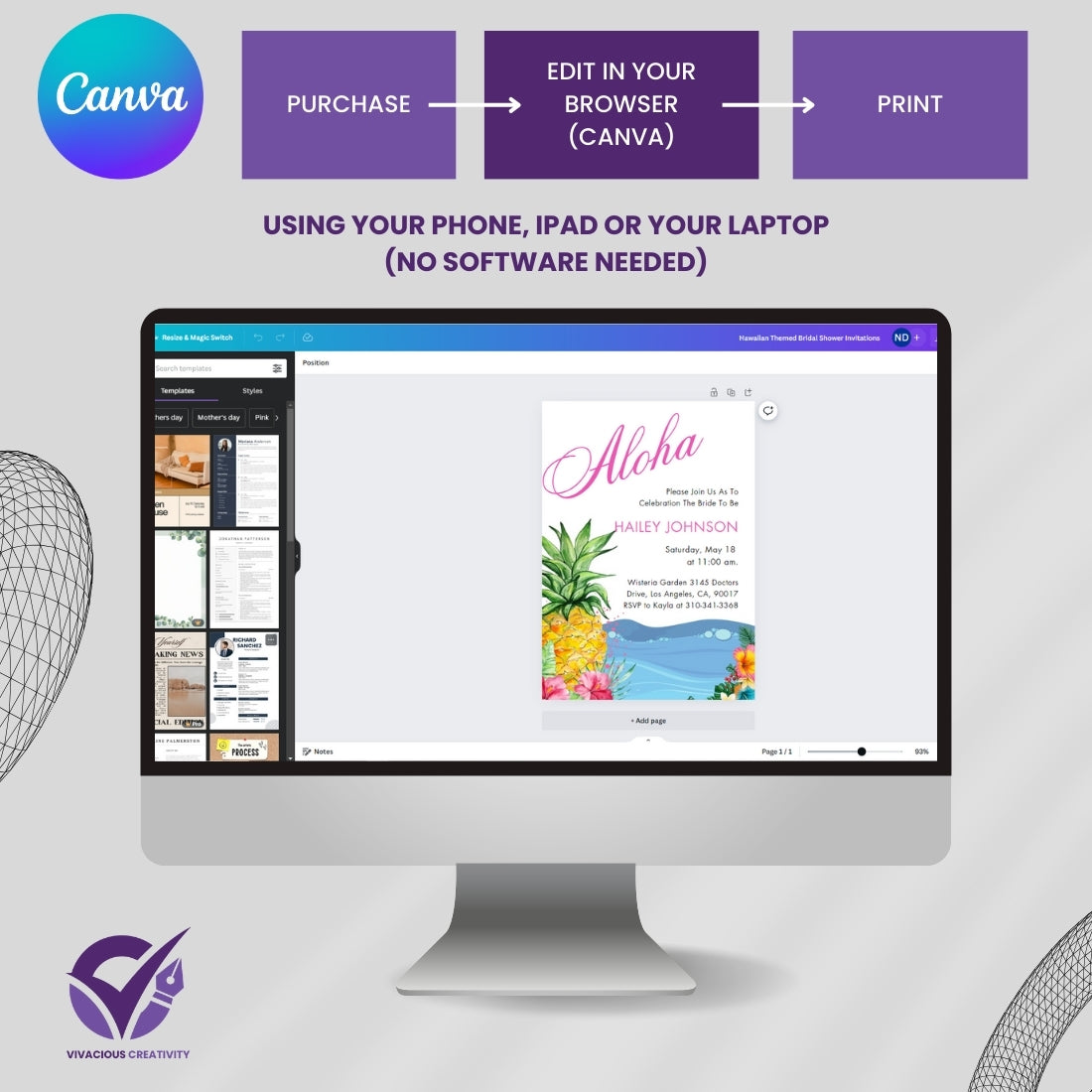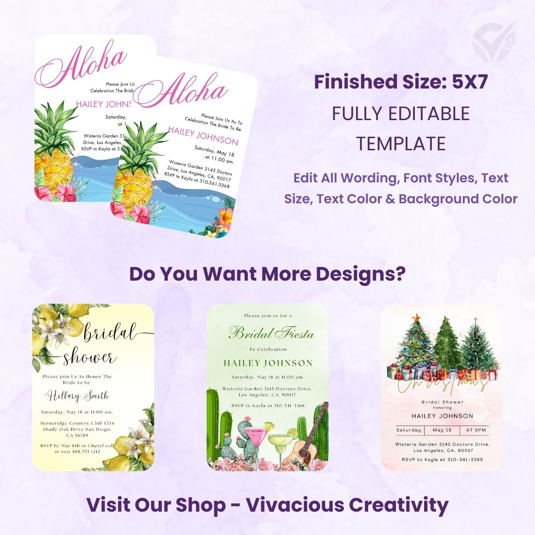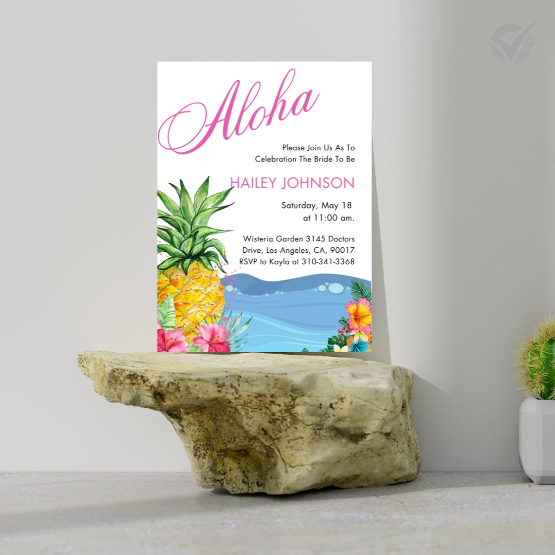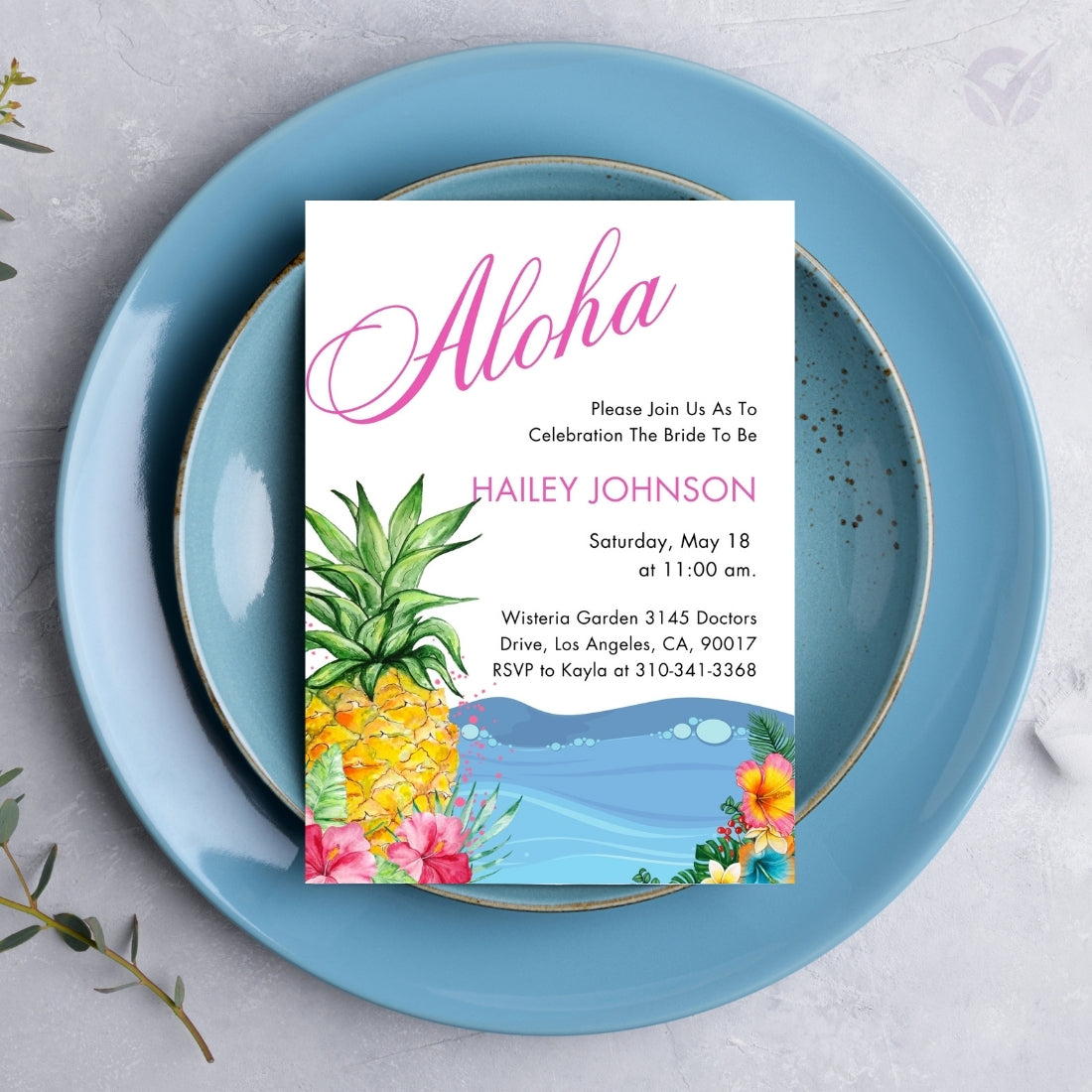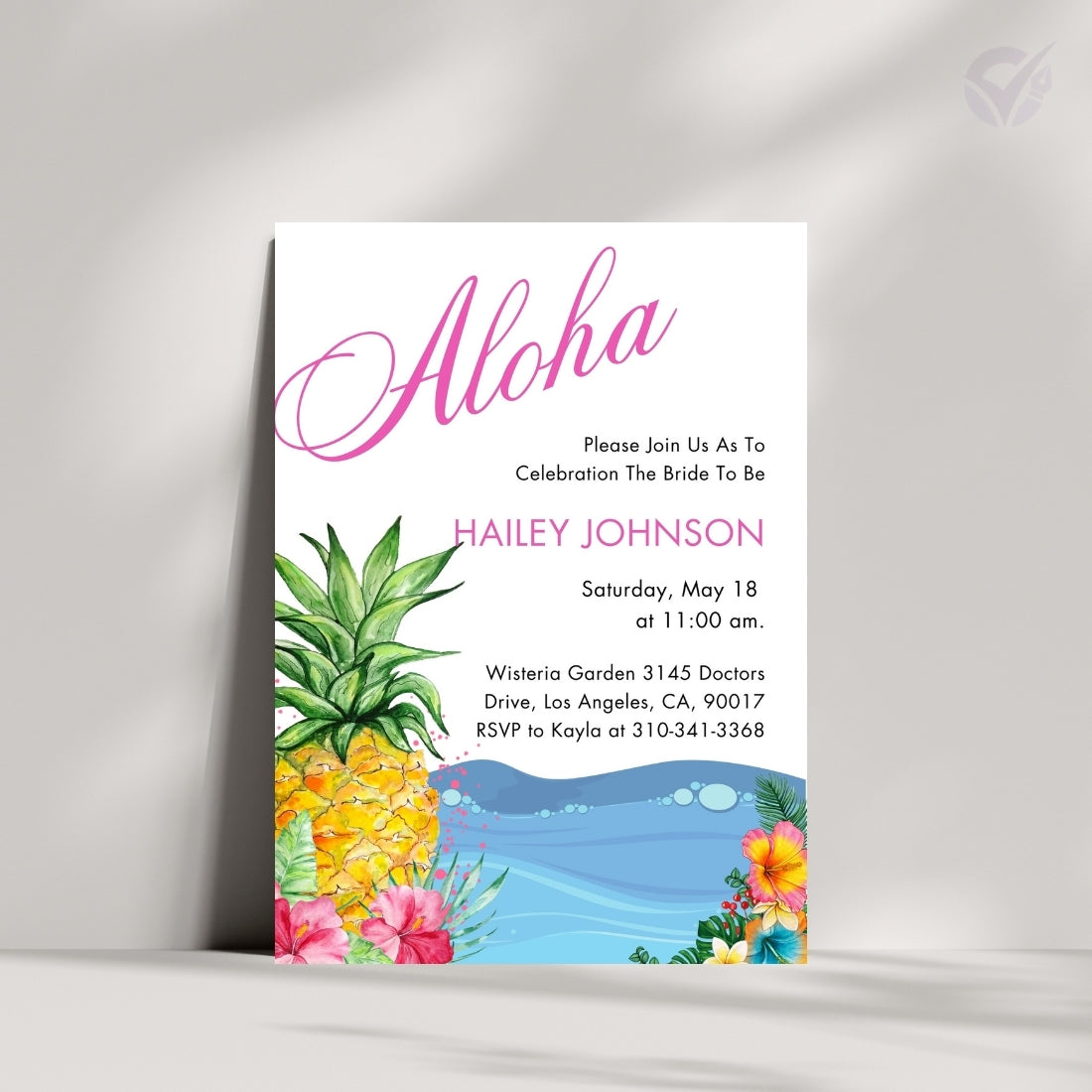 Hawaiian Themed Bridal Shower Invitations Editable Canva Template Digital Download
