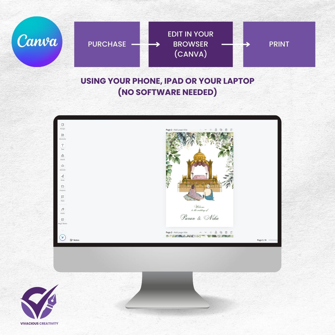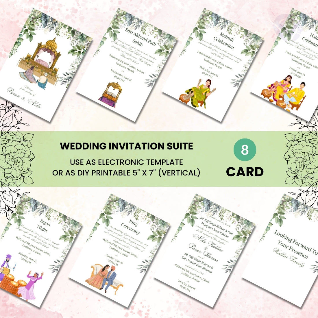Illustrated Sikh Wedding Invitation Templates 8 Card Editable Canva Suite Digital Punjabi Wedding Invitation Set