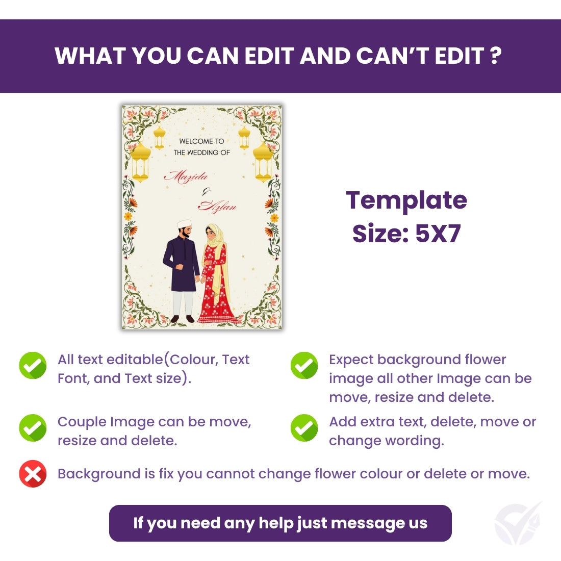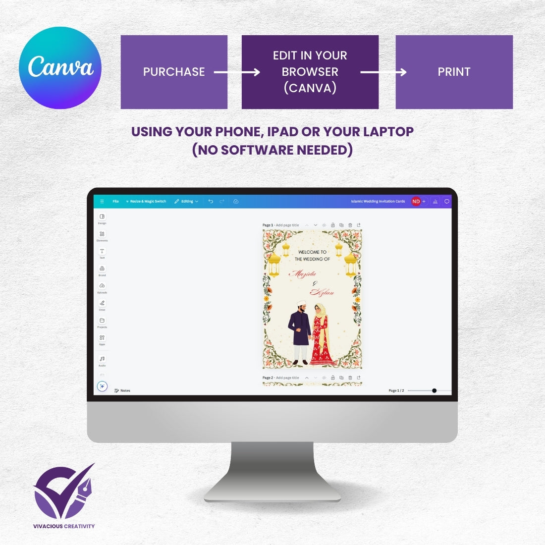 Islamic Wedding Invitation Cards 2 Page Editable Canva Template Digital Download