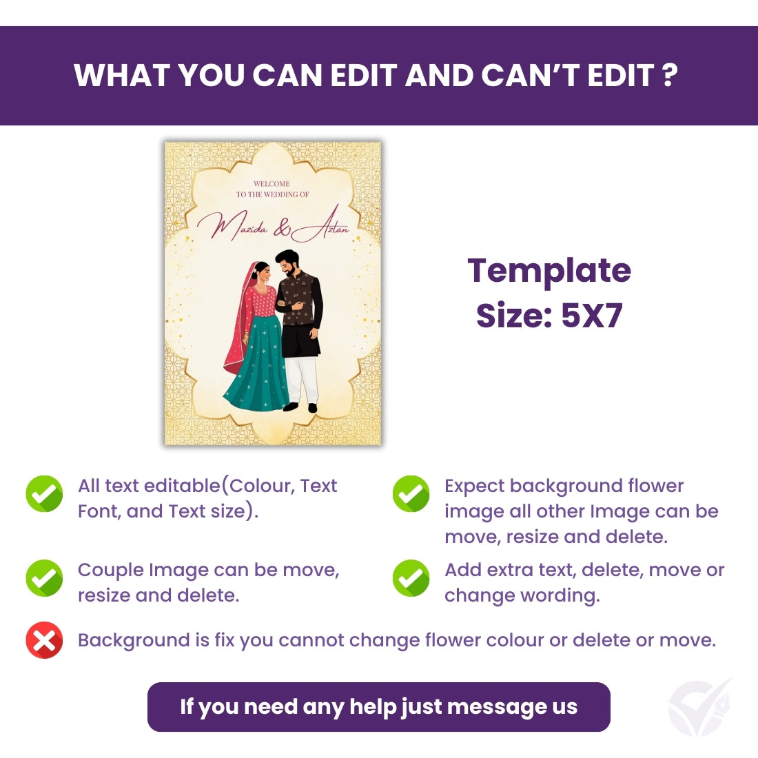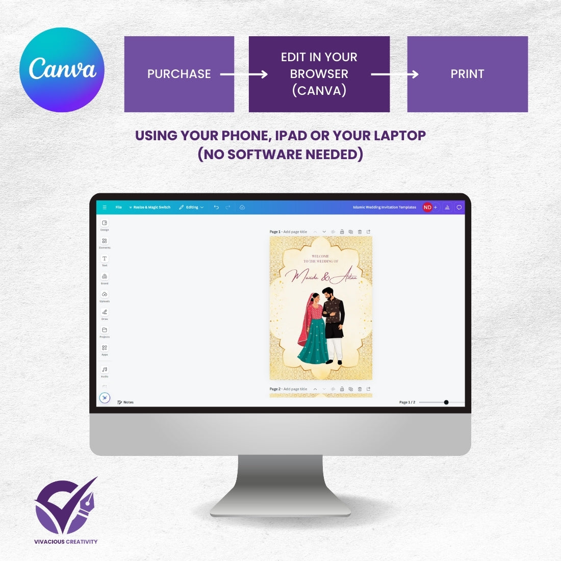 Islamic Wedding Invitation Templates 2 Page Editable Canva Design Digital Download