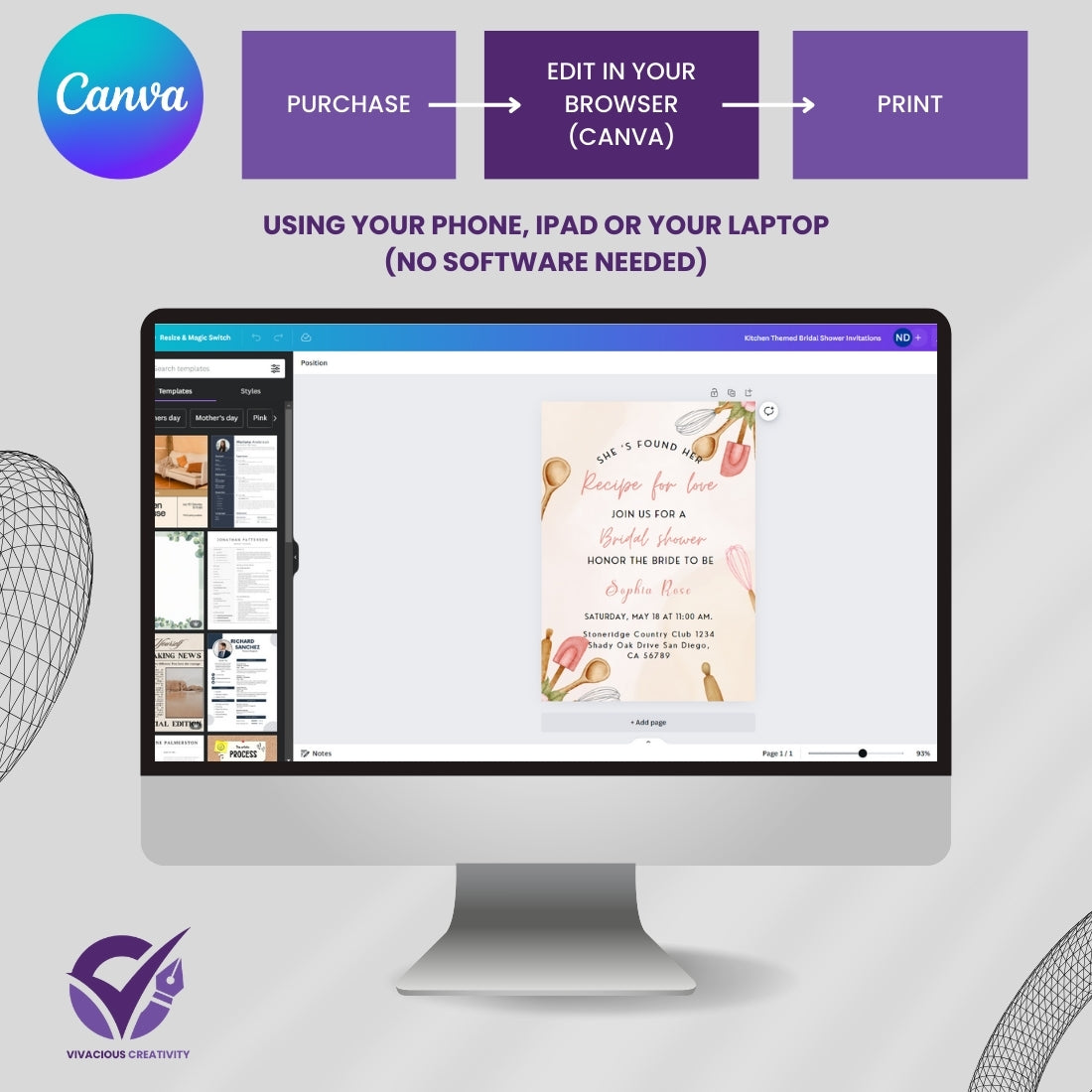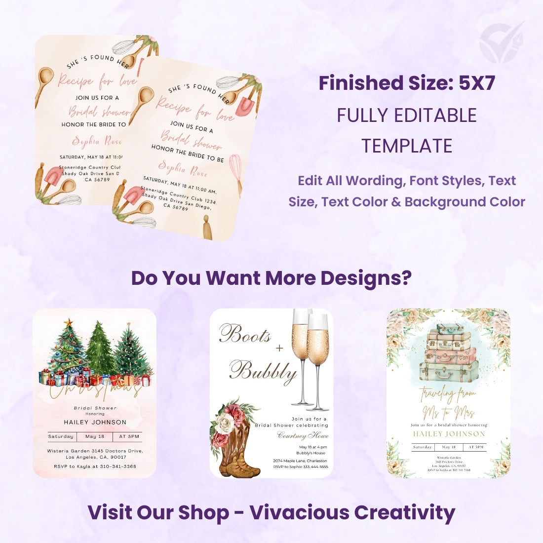 Kitchen Theme Bridal Shower Invitations Editable Canva Template Digital Download
