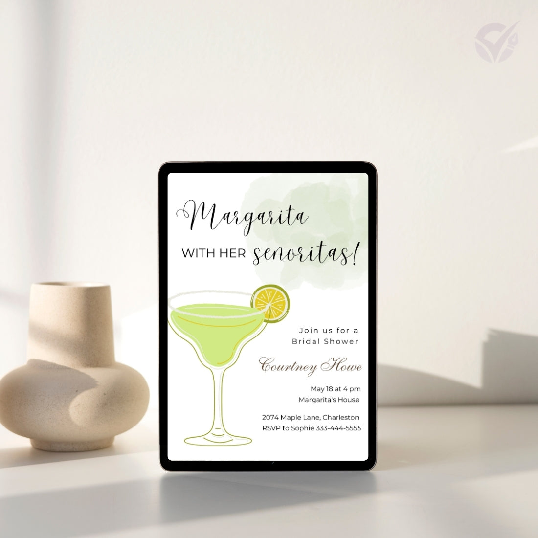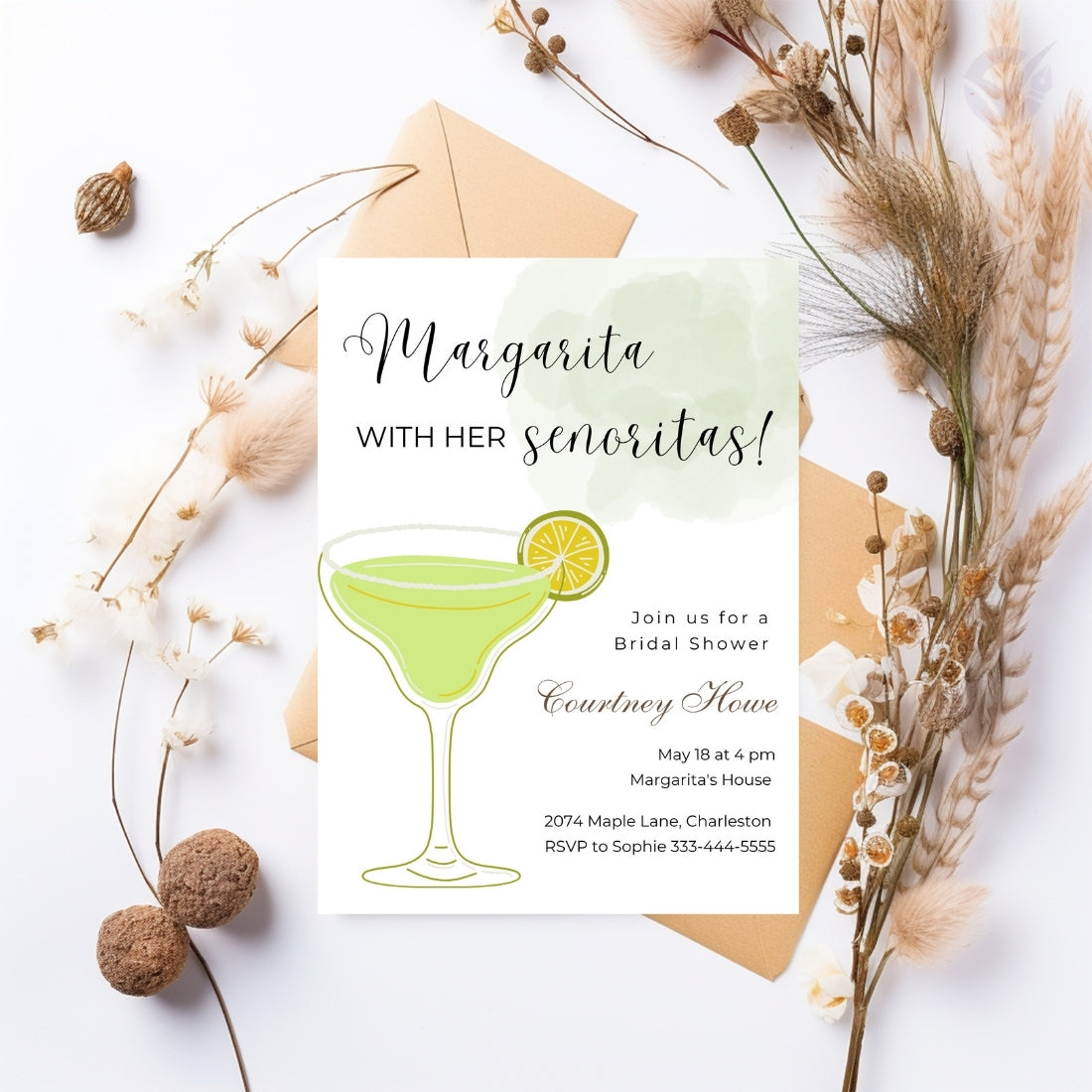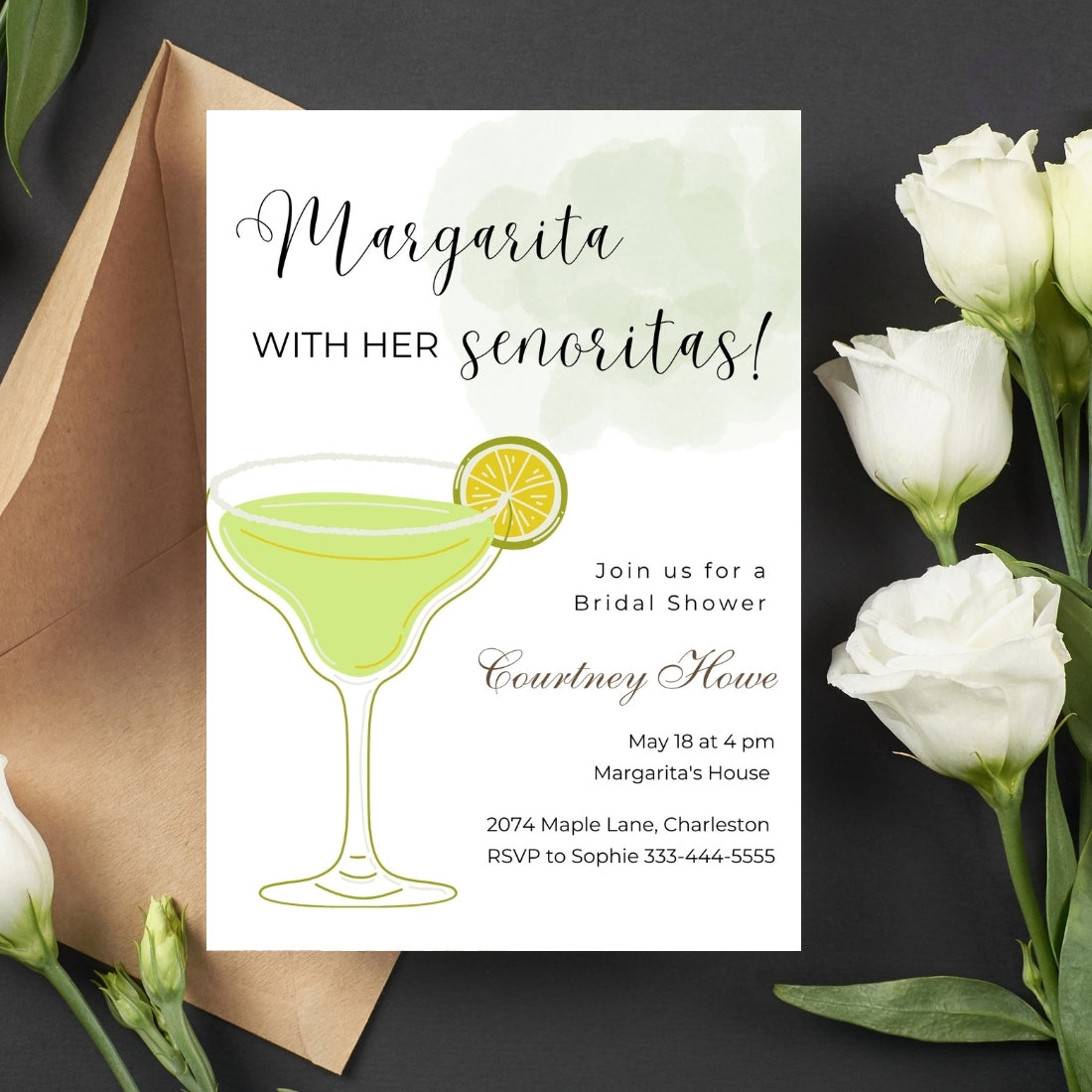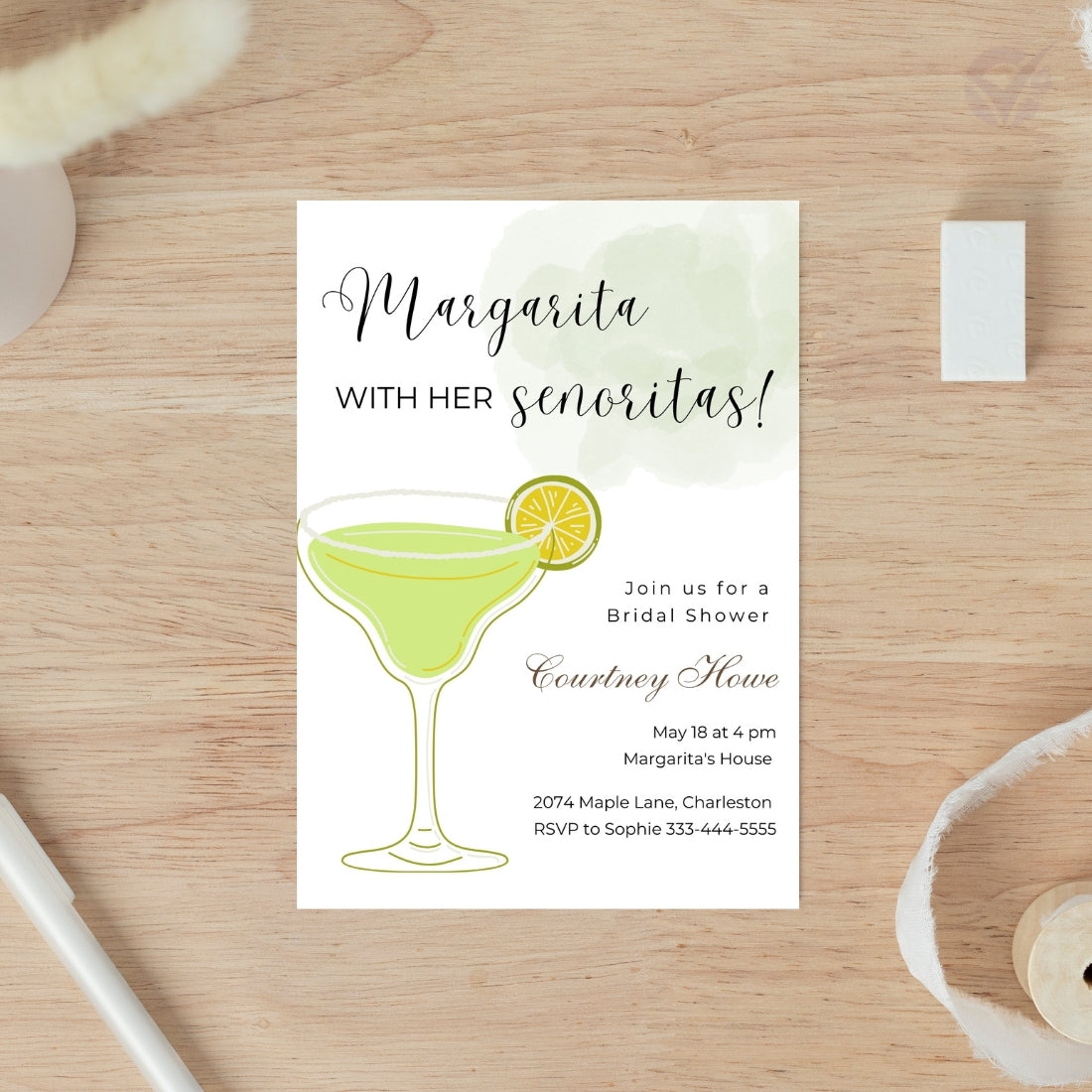 Lemon Bridal Shower Invitations "Margarita with Her Señoritas" Theme Editable Canva Template