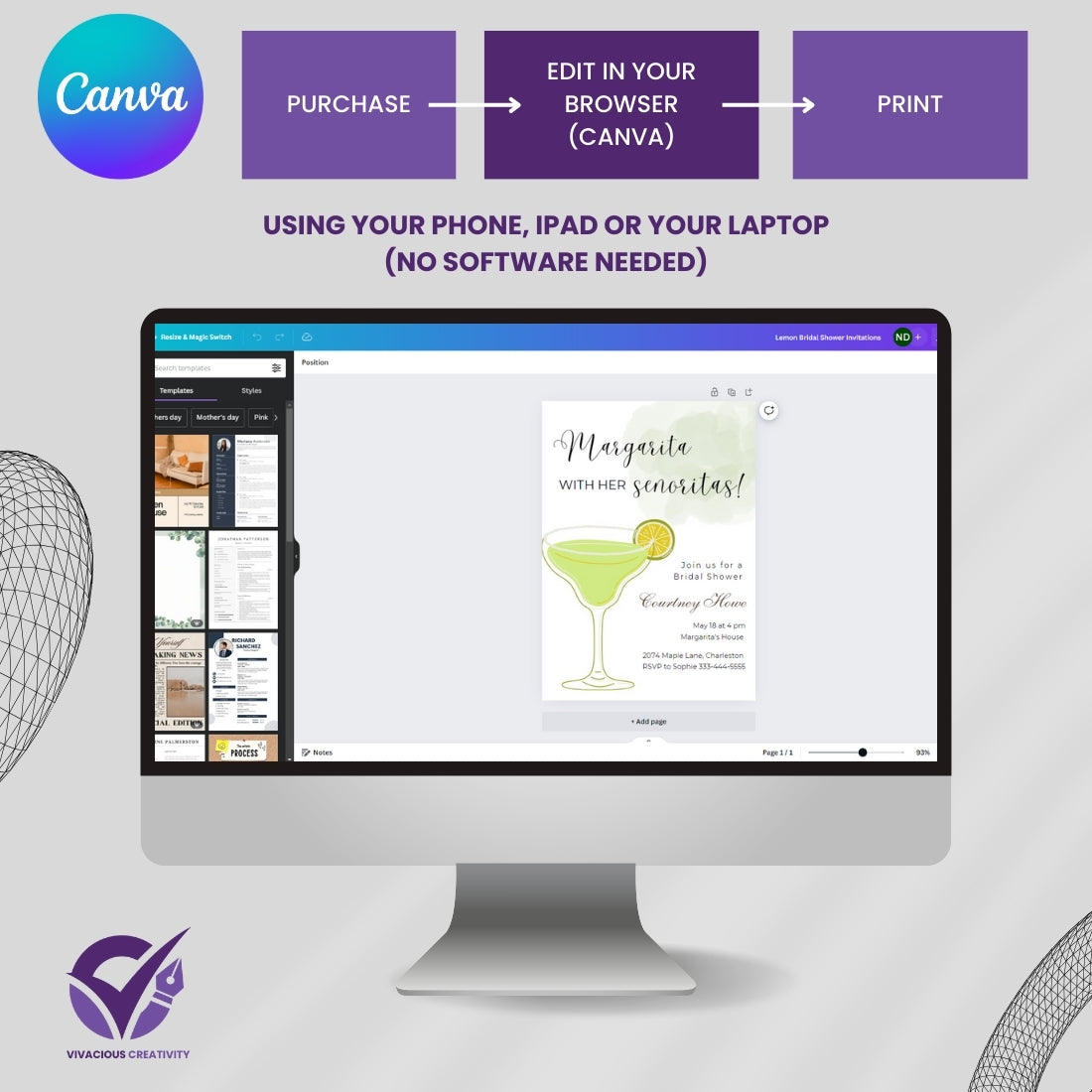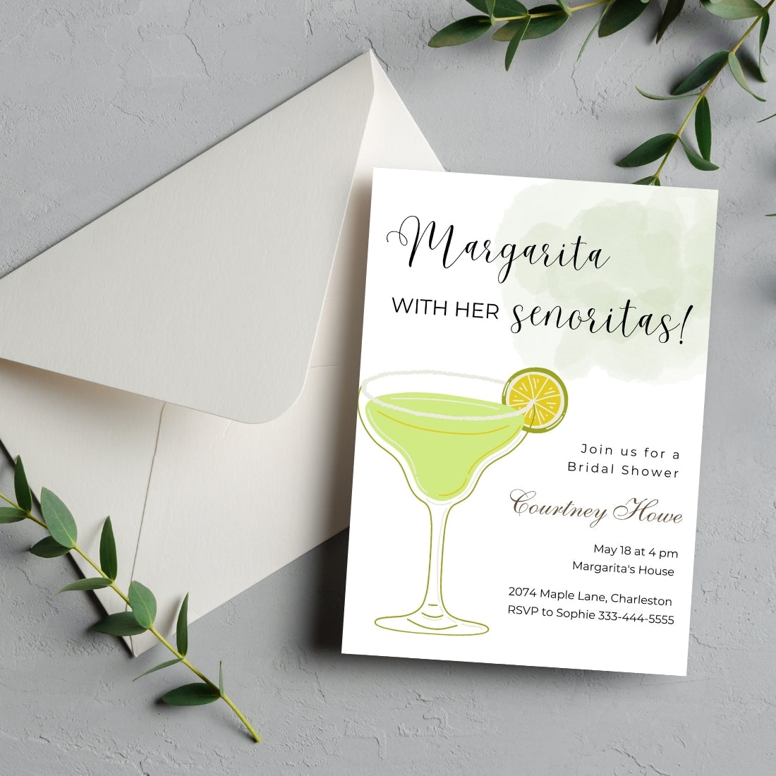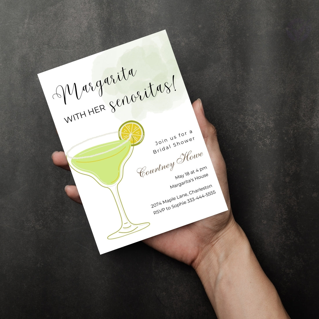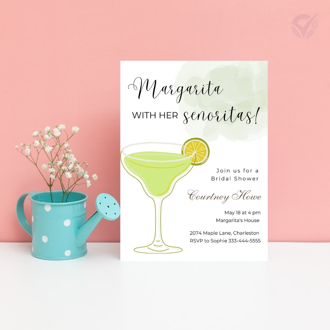 Lemon Bridal Shower Invitations "Margarita with Her Señoritas" Theme Editable Canva Template