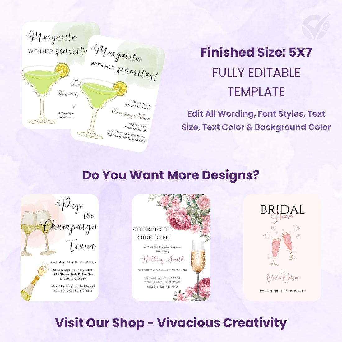 Fresh, fun, and full of zest! Celebrate the bride-to-be with our Lemon Bridal Shower Invitations featuring the playful phrase "Margarita with Her Señoritas" — the perfect invite for a sunny, citrus-themed celebration. Whether you’re planning a summer soirée, poolside brunch, or fiesta with margaritas, this editable Canva template sets the perfect tone.