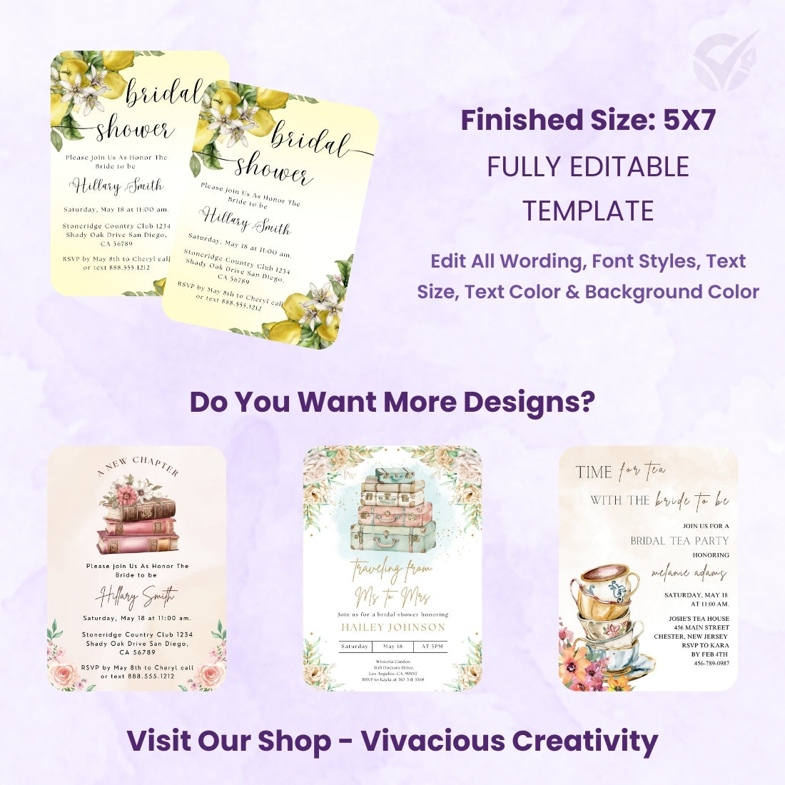 Designed for a joyful and sun-soaked bridal shower, this editable Canva template features cheerful citrus elements and modern fonts. It's easy to personalize and perfect for summer garden parties, brunches, or any event that’s all about good vibes and fresh starts 🍋💛