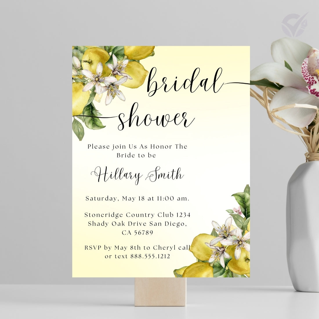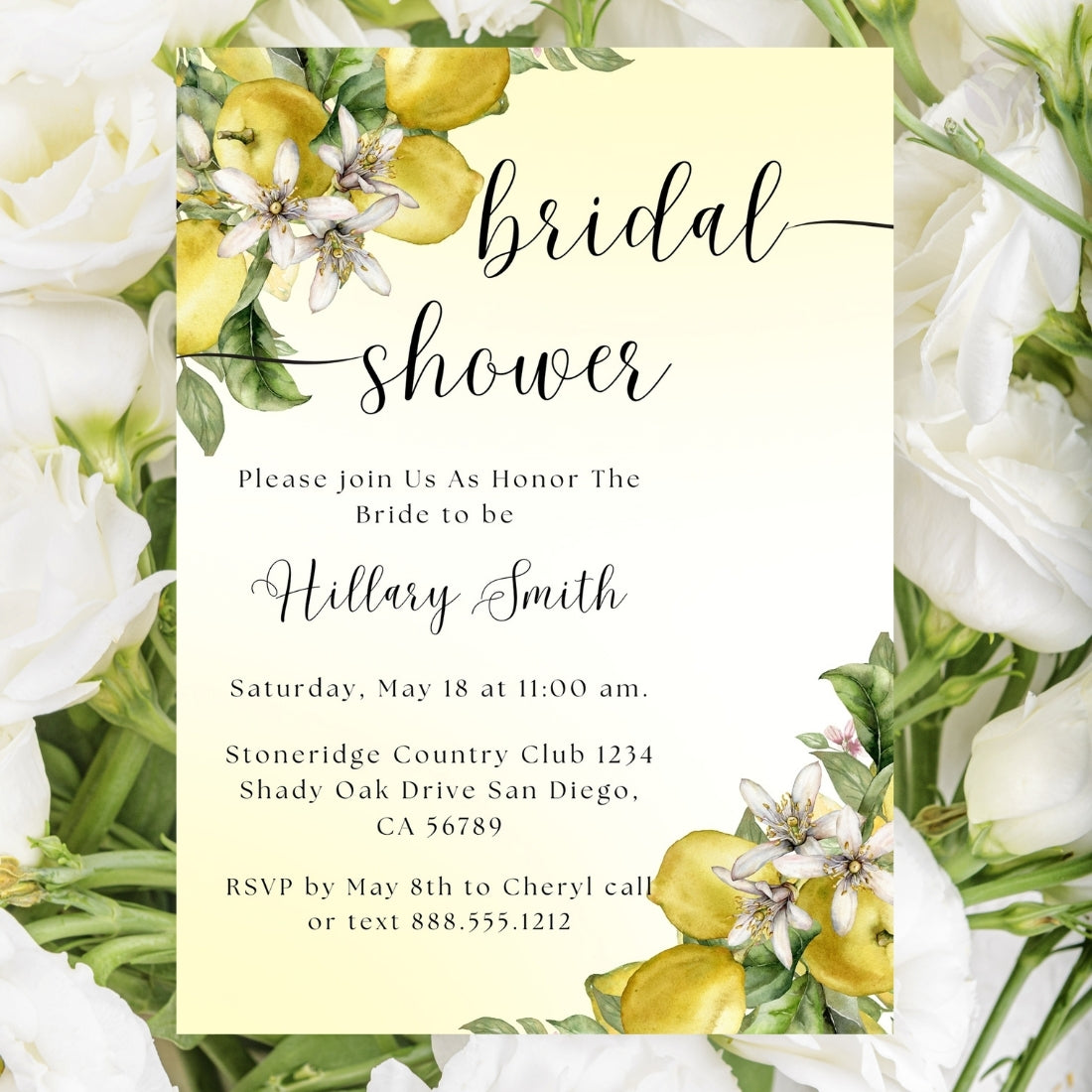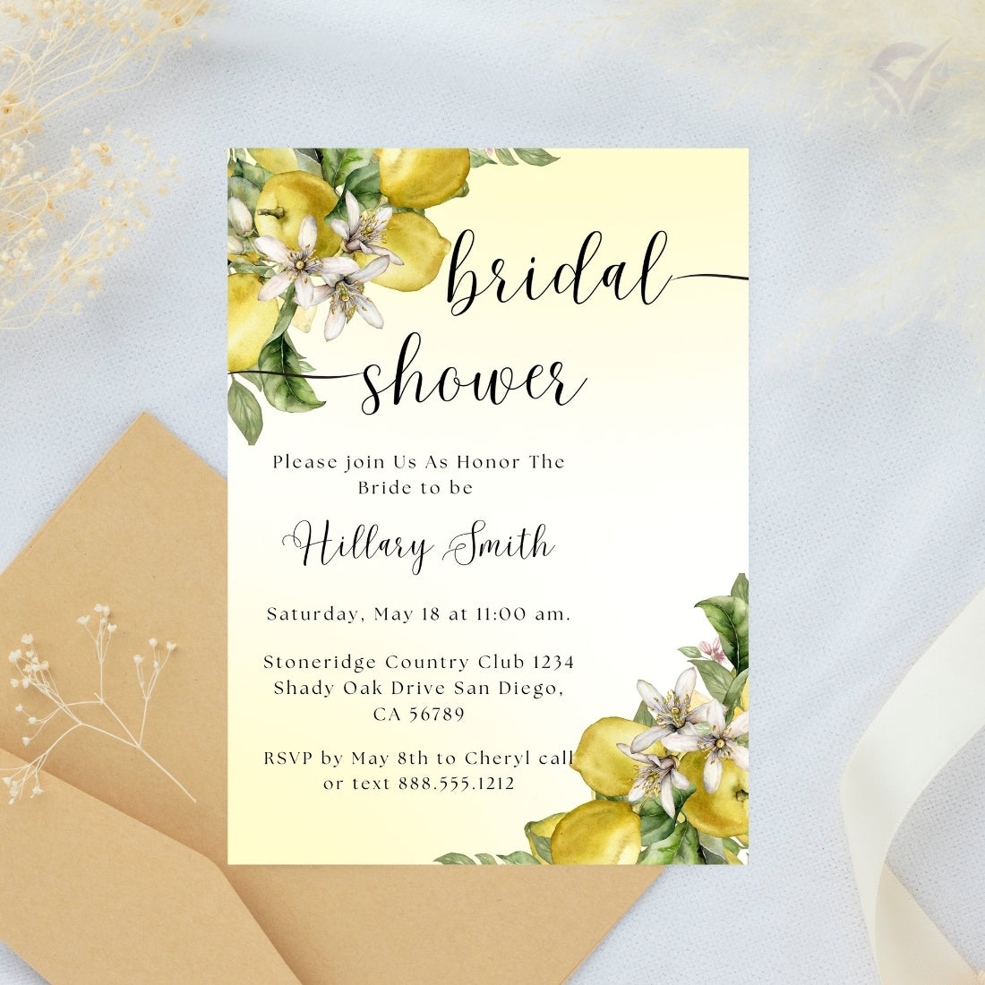 Lemon Themed Bridal Shower Invitation Editable Canva Template Citrus Bridal Shower Invite Instant Digital Download