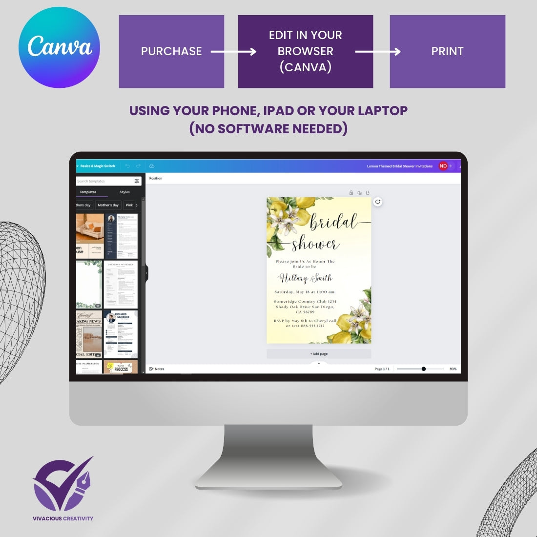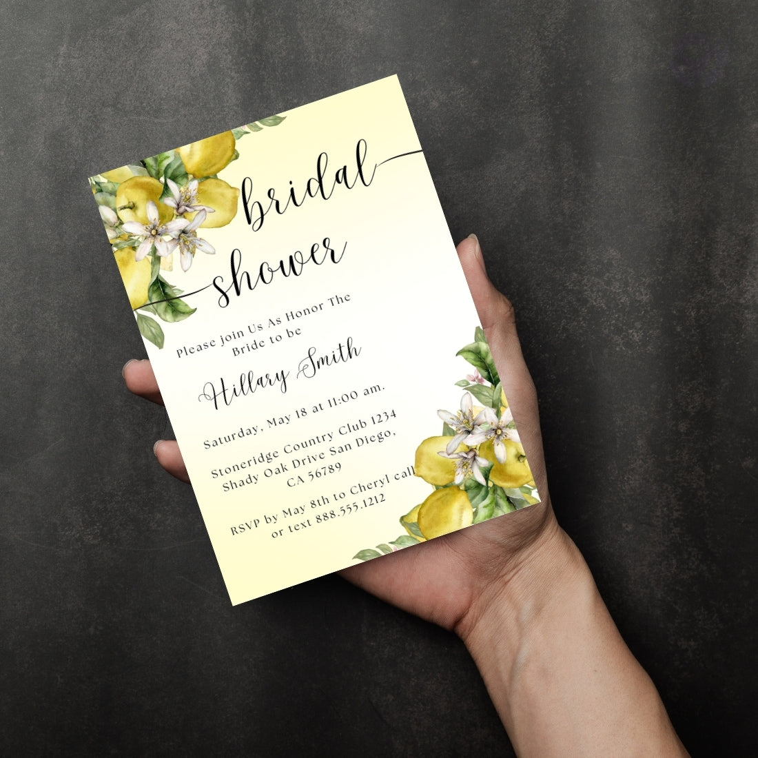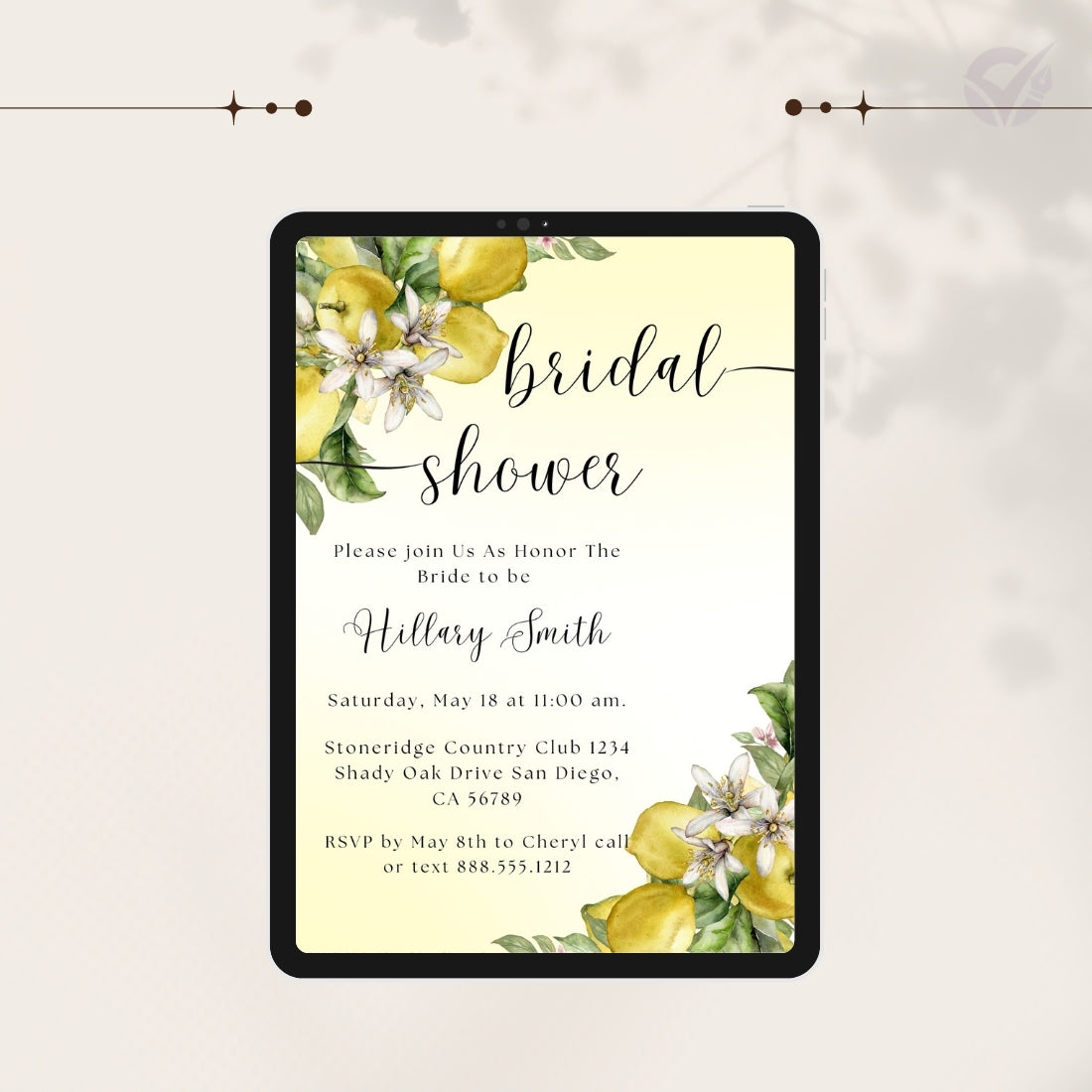 Lemon Themed Bridal Shower Invitation Editable Canva Template Citrus Bridal Shower Invite Instant Digital Download
