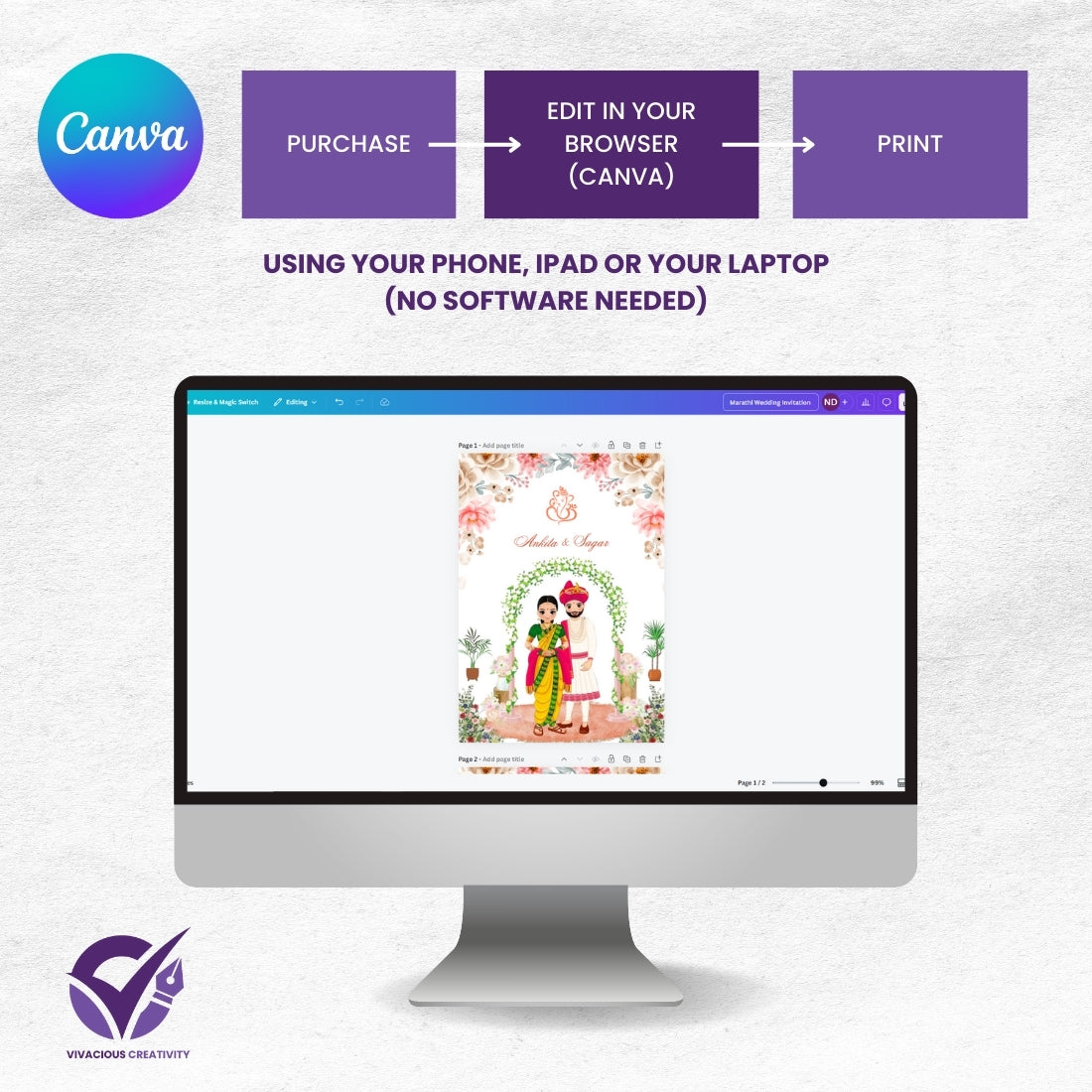 Marathi Wedding Invitation 2 Page Editable Canva Template Traditional Indian Wedding Card Instant Digital Download