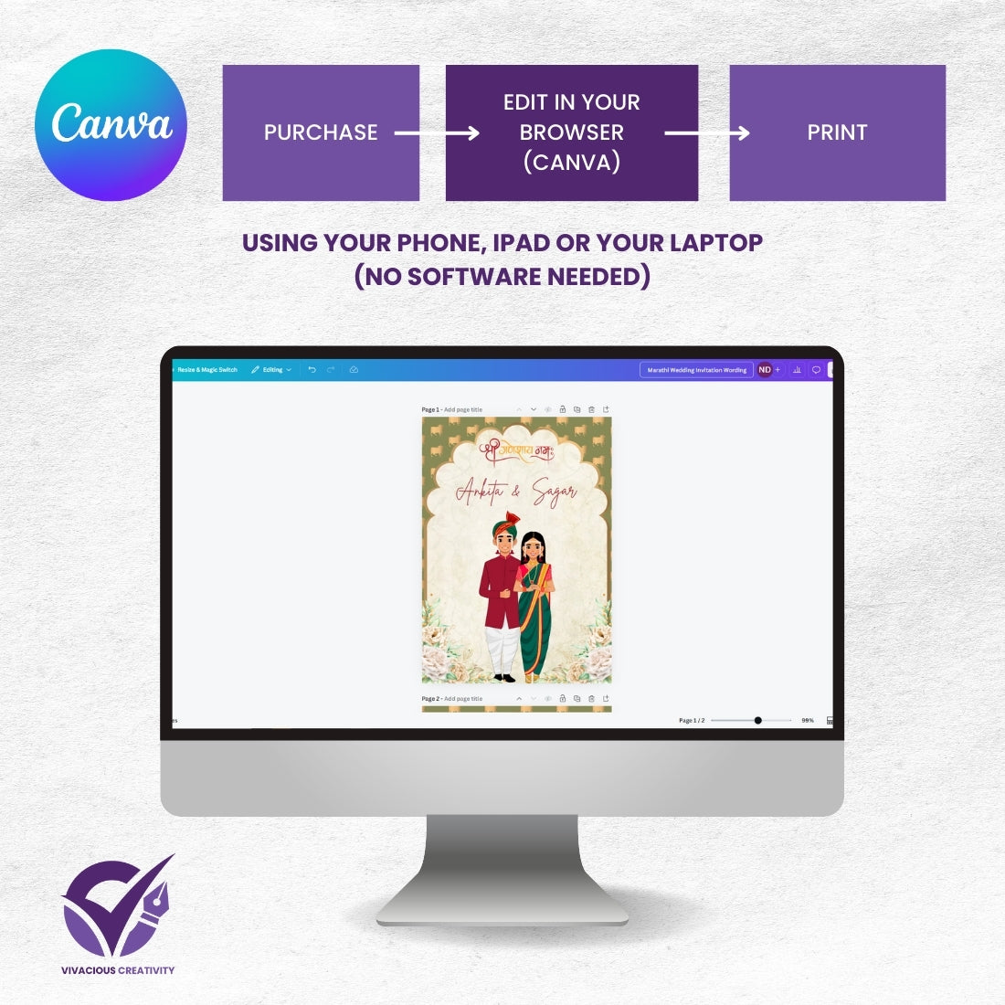 Marathi Wedding Invitation Wording 2 Page Digital Canva Template Editable Wedding Invite Instant Download