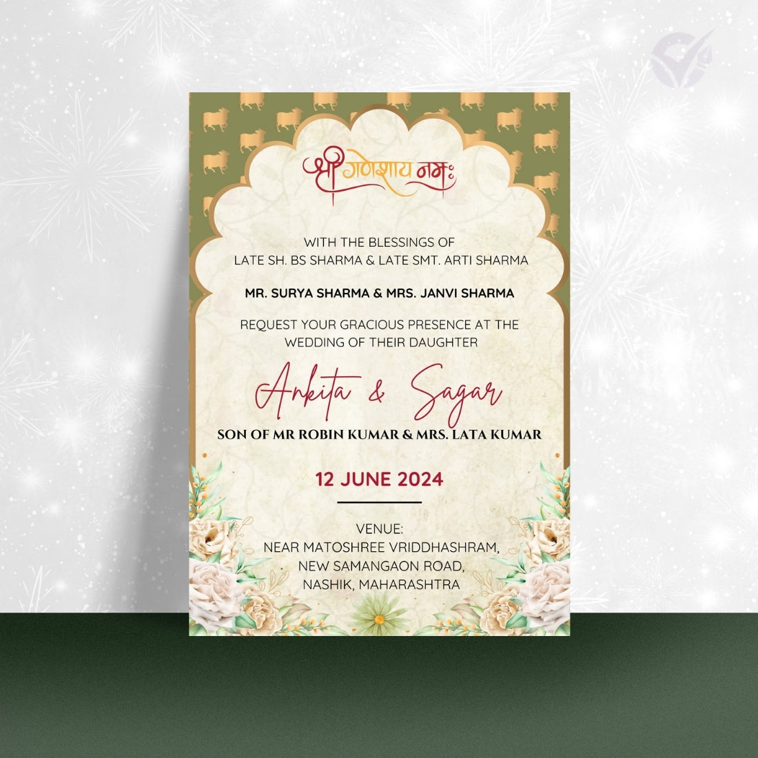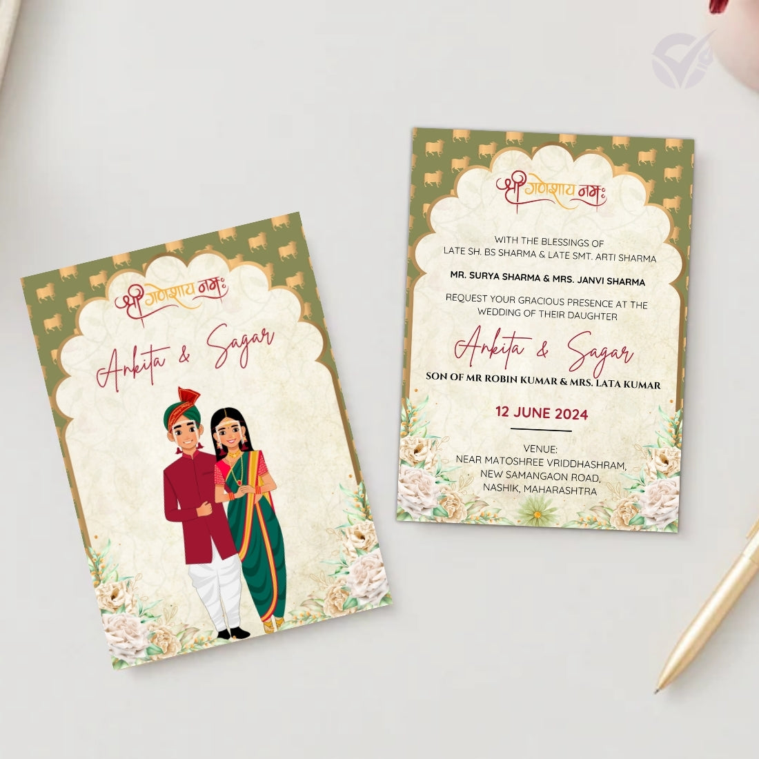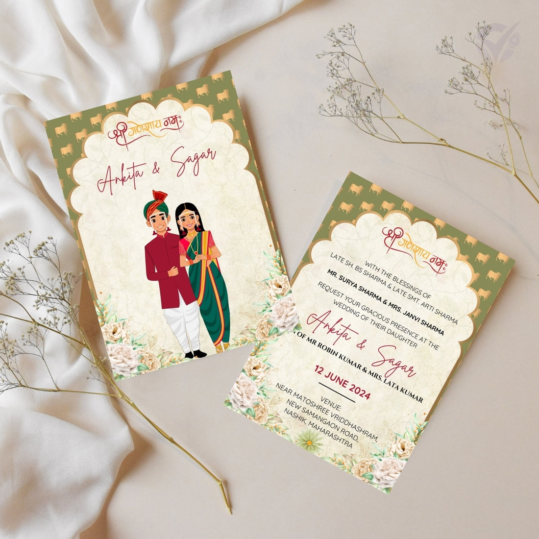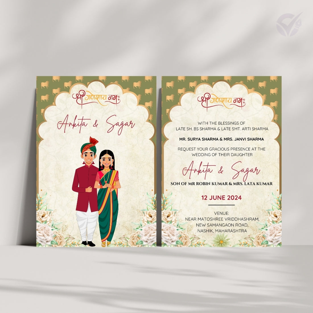 Whether you're planning a traditional Maharashtrian wedding or a cultural celebration abroad, this digital design makes it easy to personalize your invite while preserving the charm of Marathi customs.