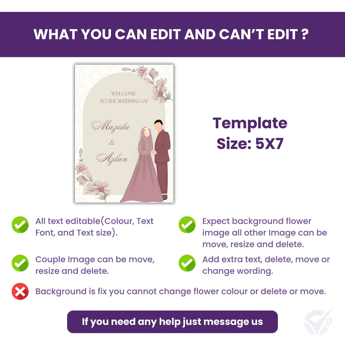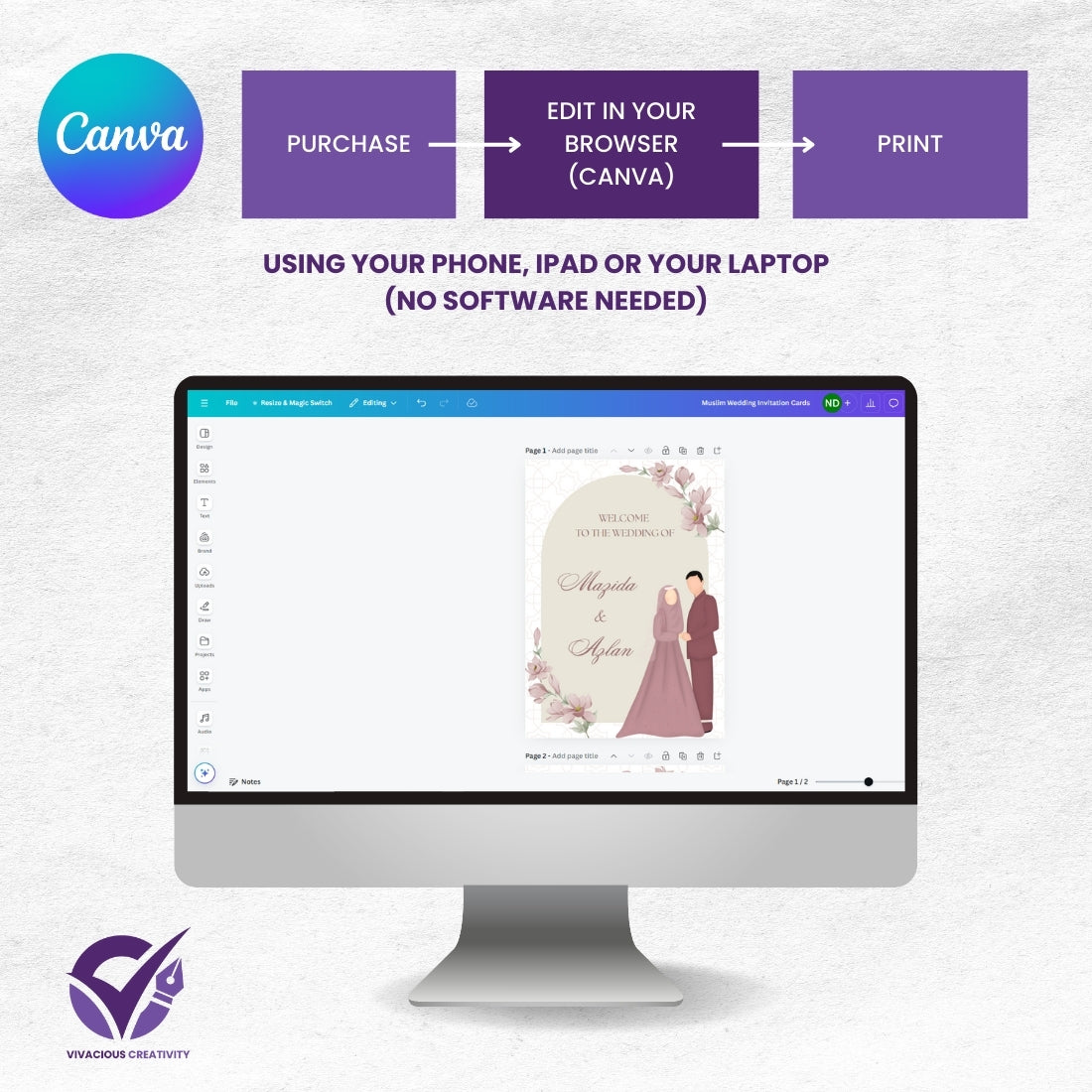 Muslim Wedding Invitation Cards 2 Page Editable Canva Template Digital Download