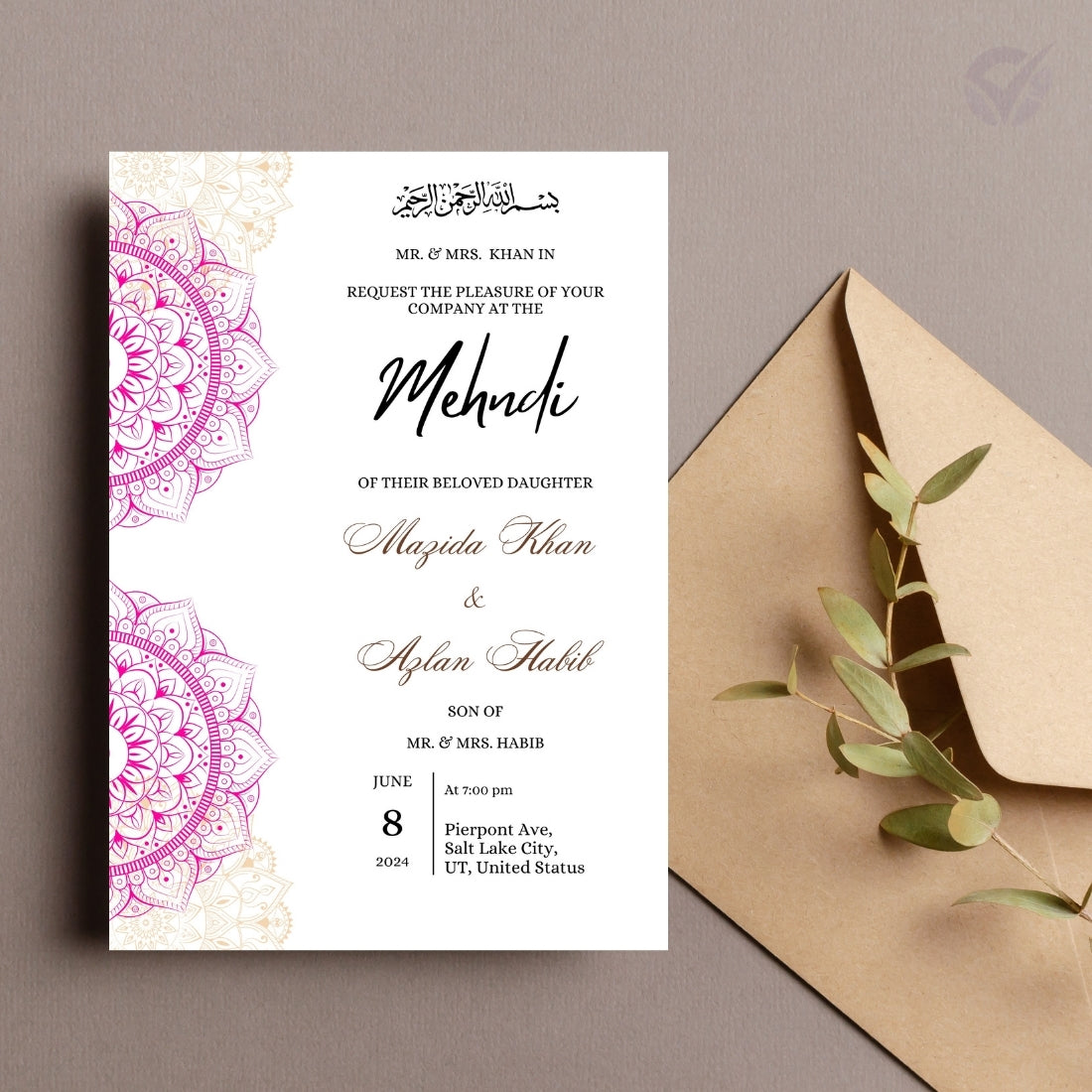 Mehndi Invitation – Bright and festive with floral or henna-inspired accents