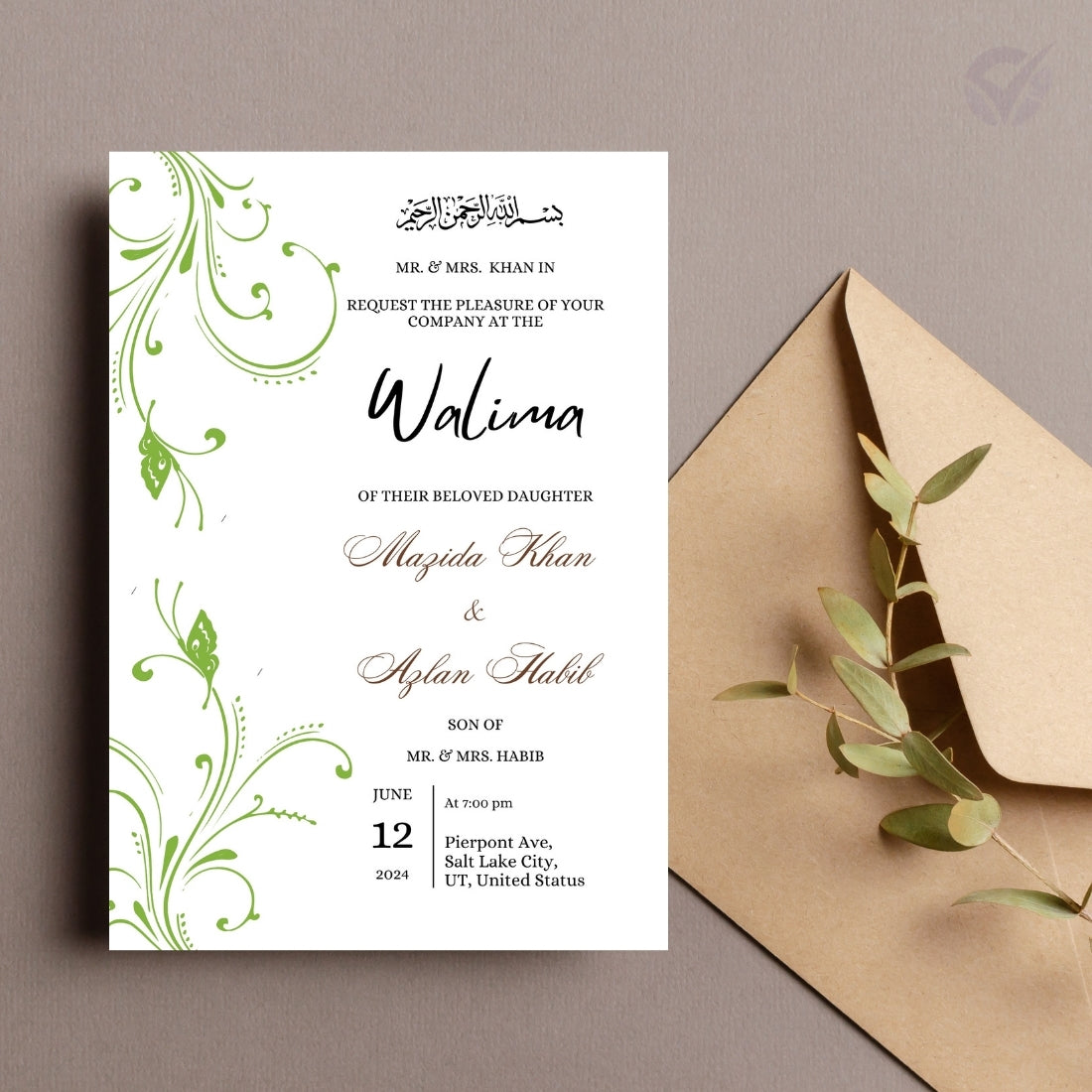 Walima Invitation – Modern, graceful layout for the reception celebration