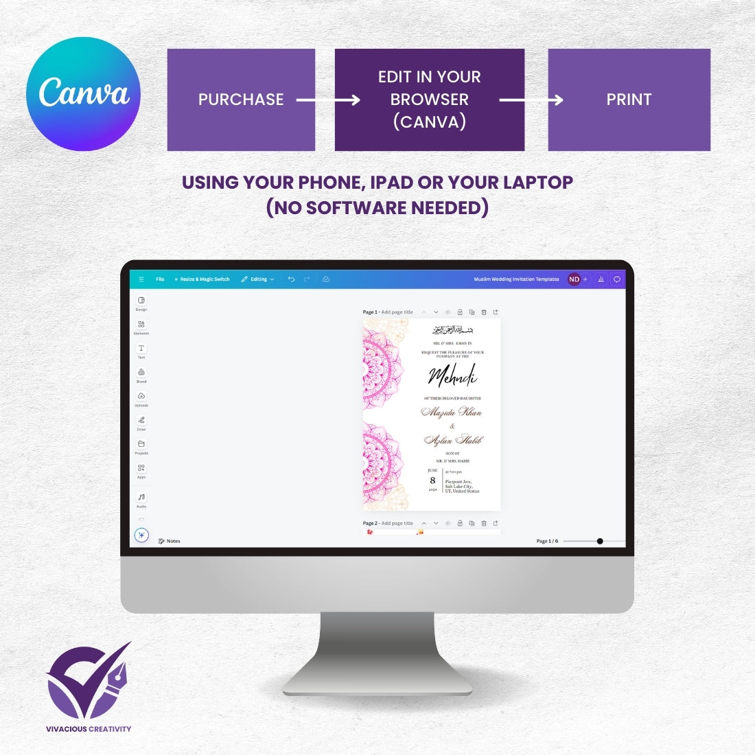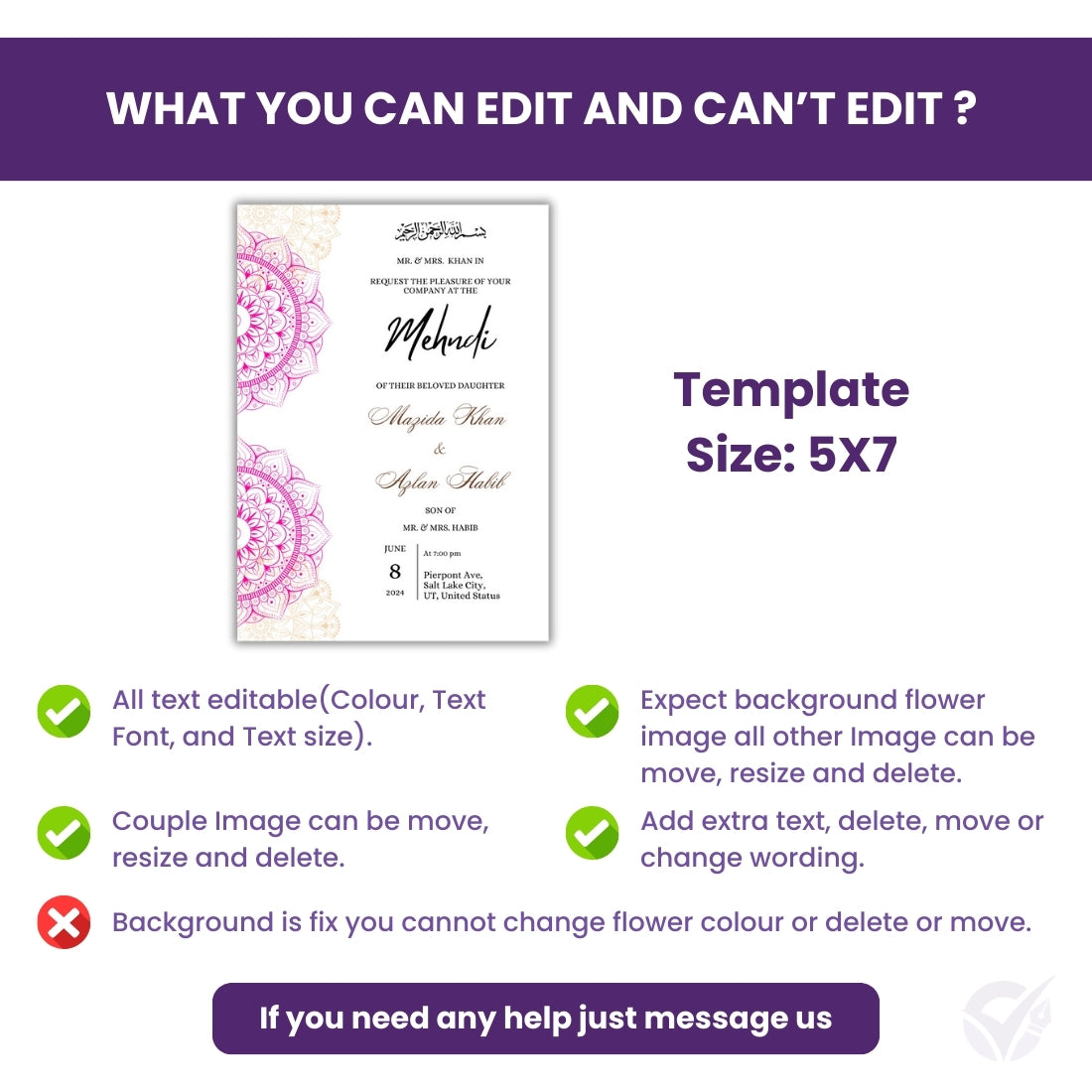 Muslim Wedding Invitation Template 6 Editable Canva Cards Mehndi, Dholki, Baraat, Nikkah, Walima, Mayoun Digital Download
