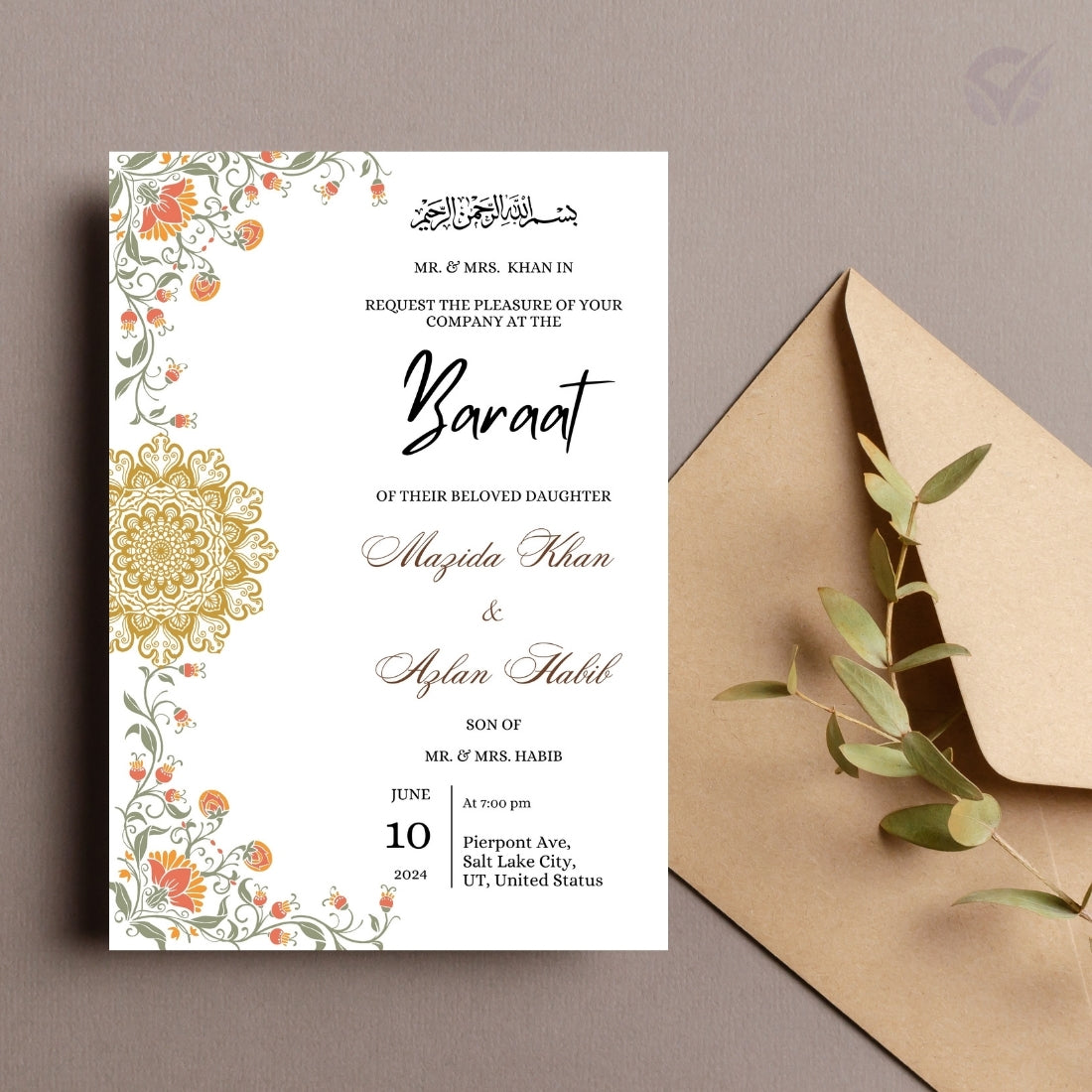 Baraat Invitation – Sophisticated card for the groom’s arrival ceremony
