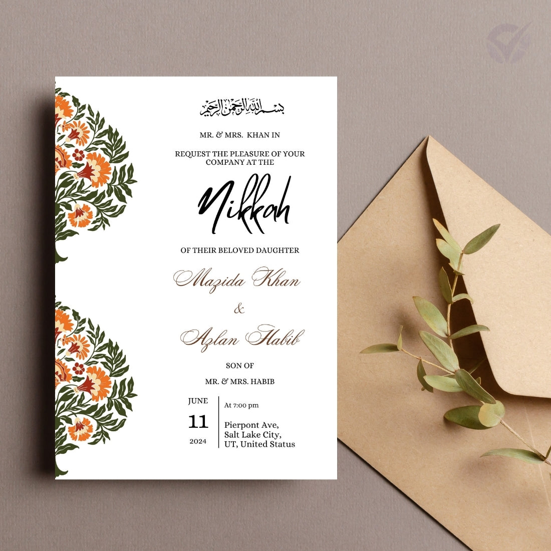Nikkah Invitation – Elegant Islamic style with optional Bismillah or Surah