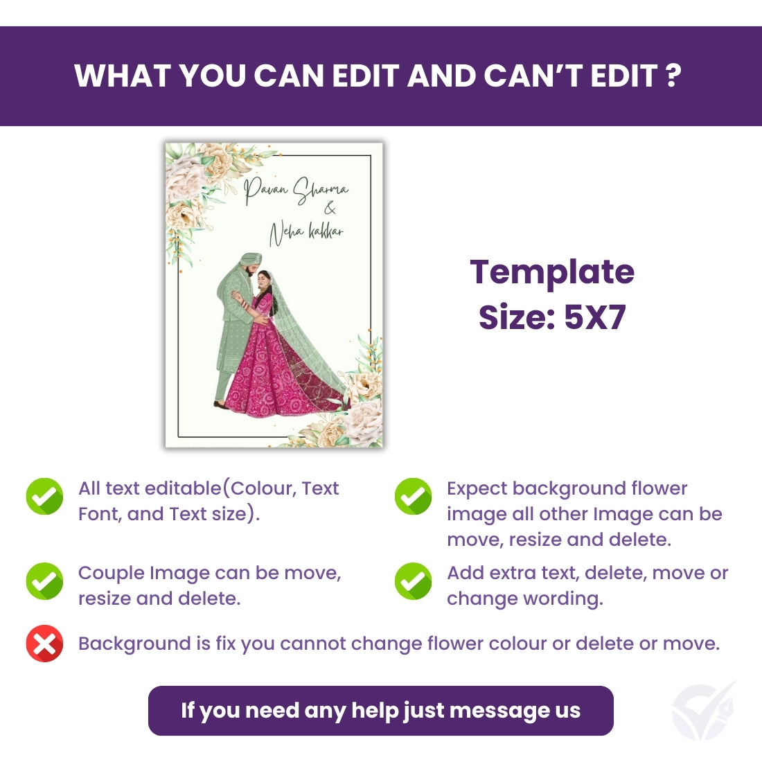 Customize text, names, date, venue, and details