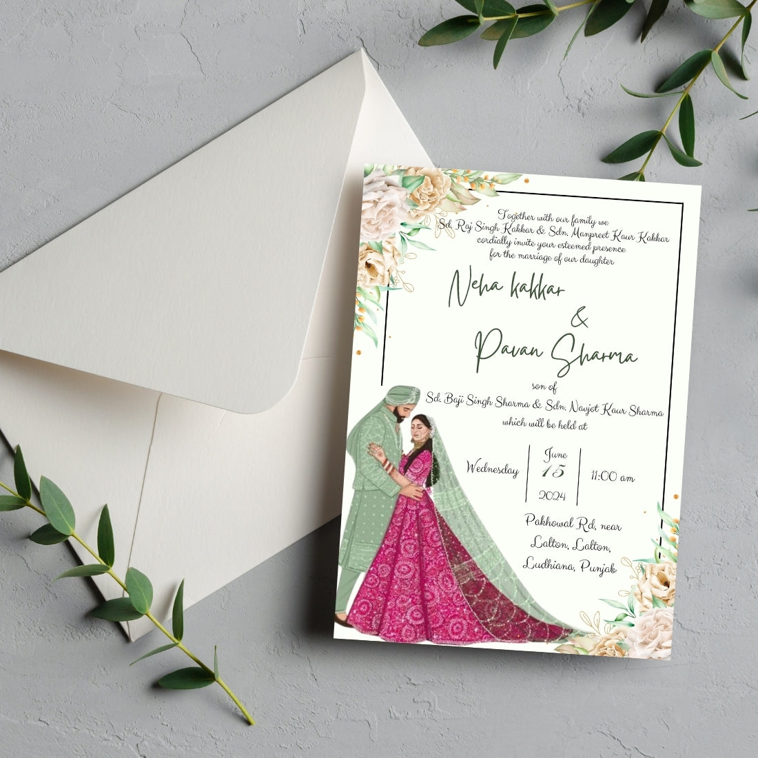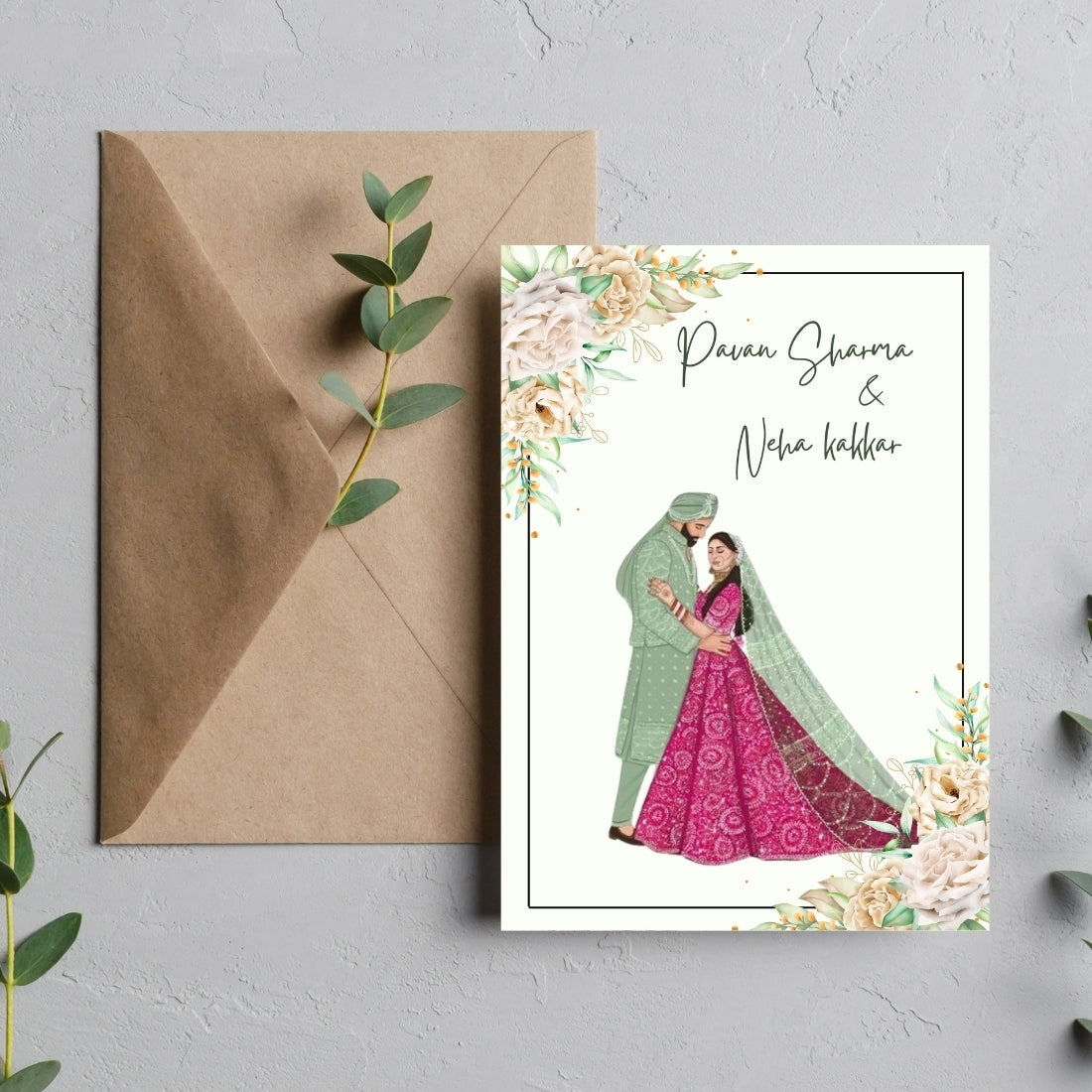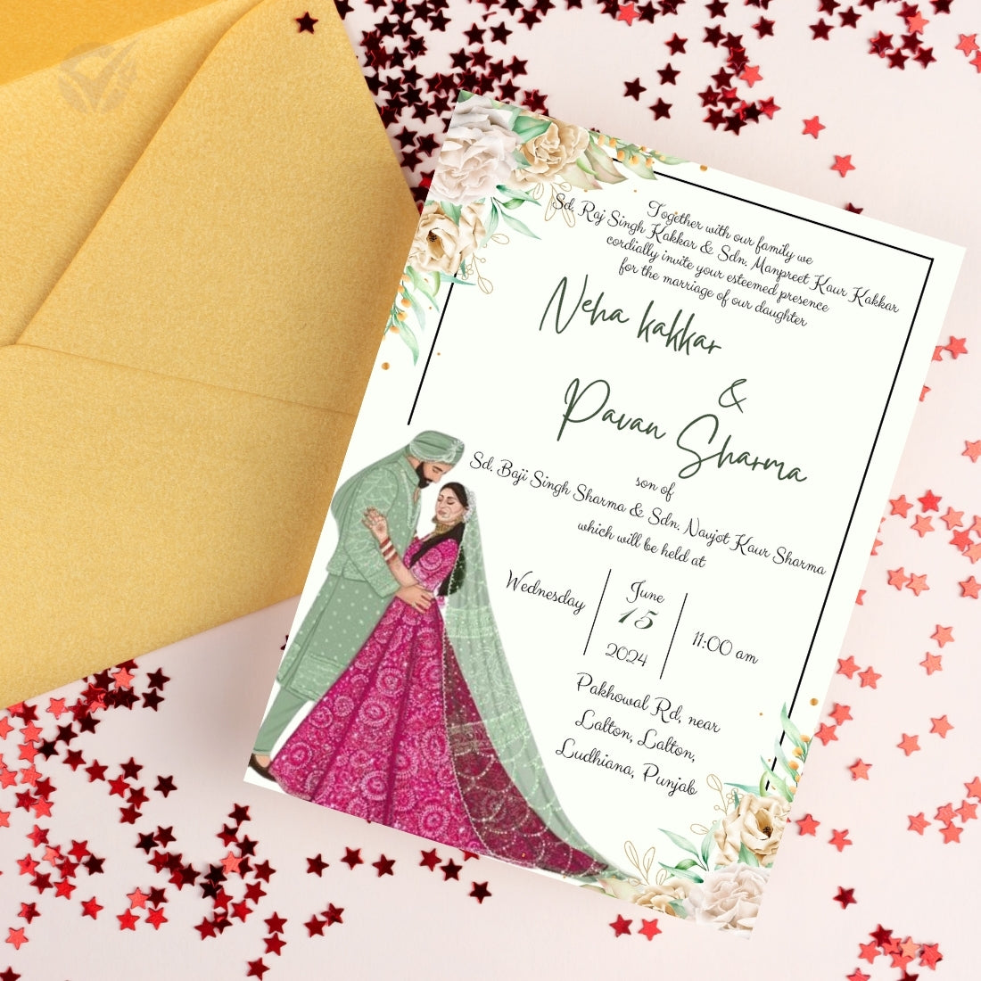 • Features a traditional Punjabi bride & groom illustration