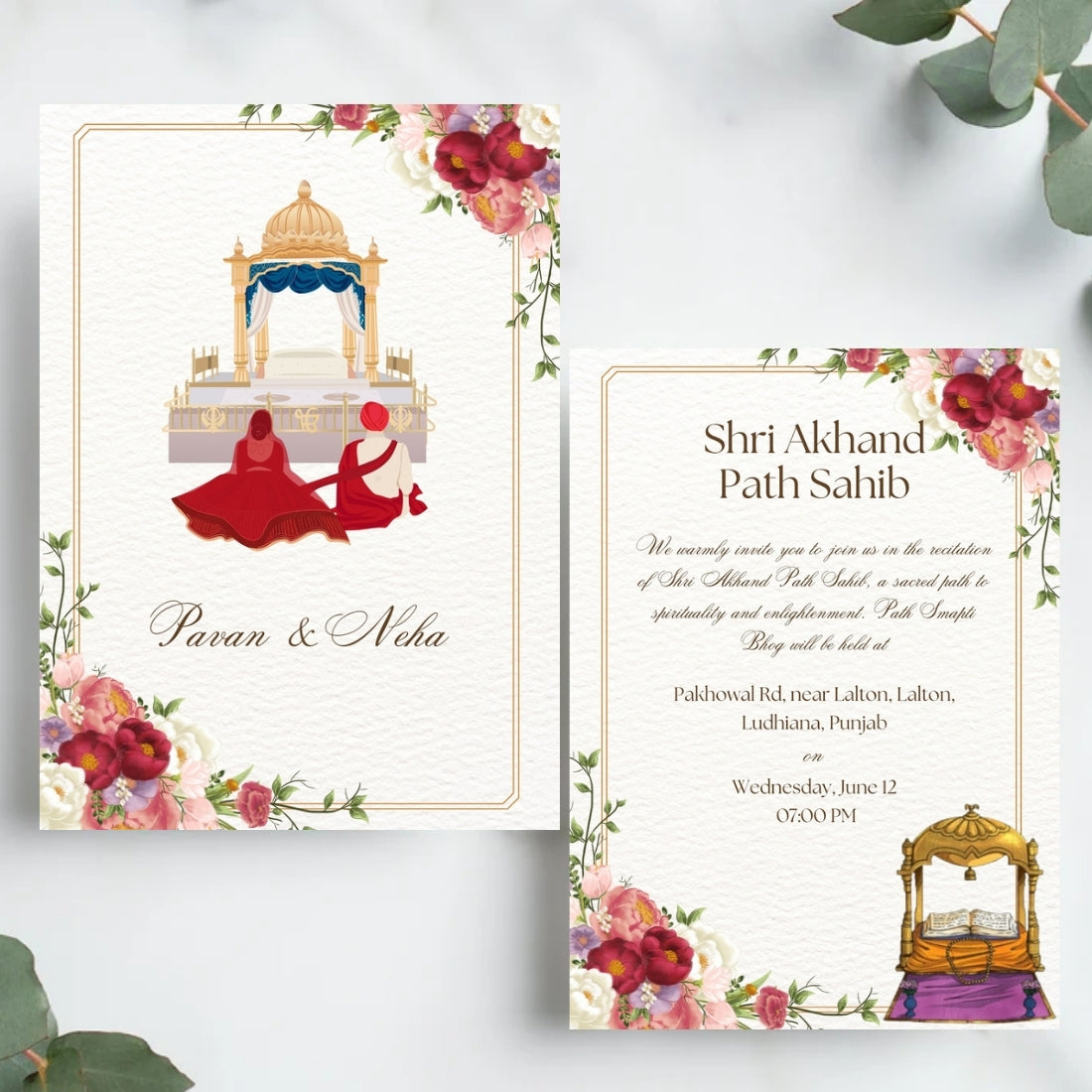 Main Wedding Invitation Card – Classic Sikh Anand Karaj invitation