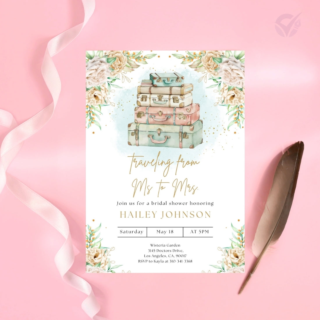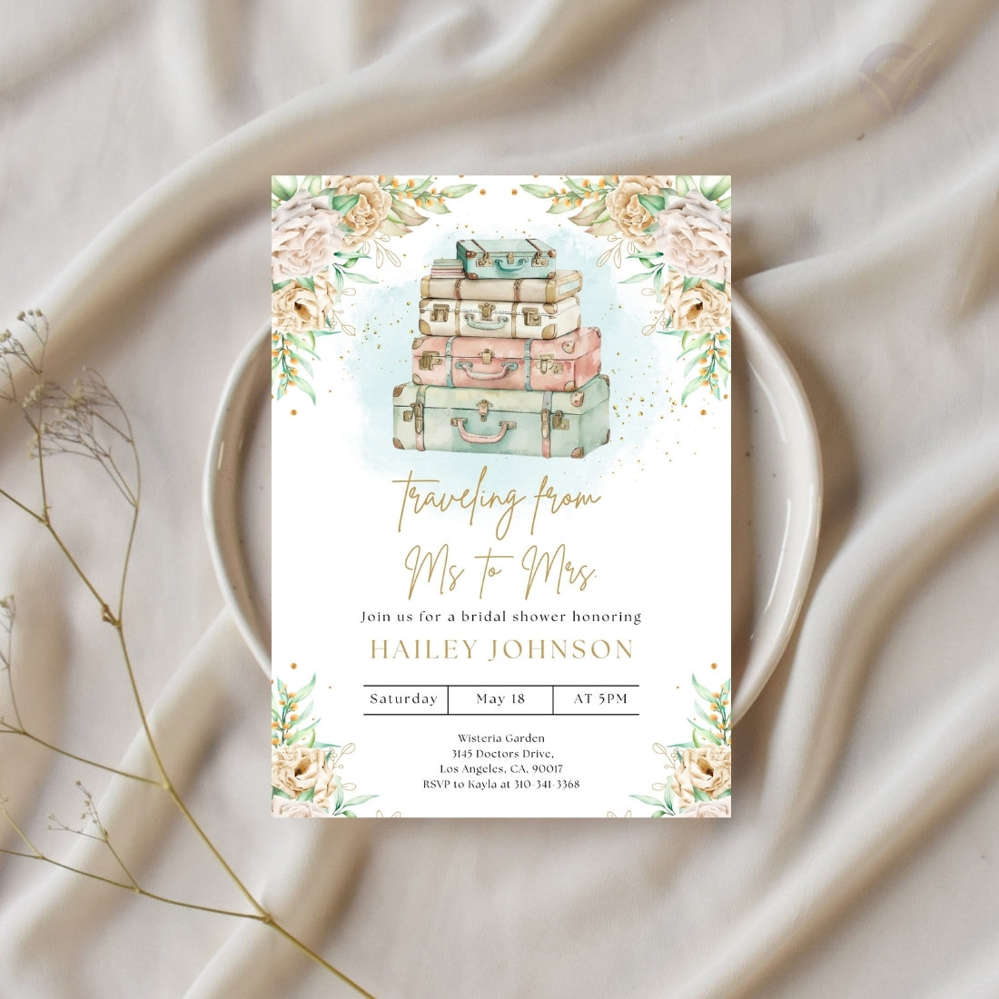 5" x 7" Bridal Shower Invitation Template (Canva format)