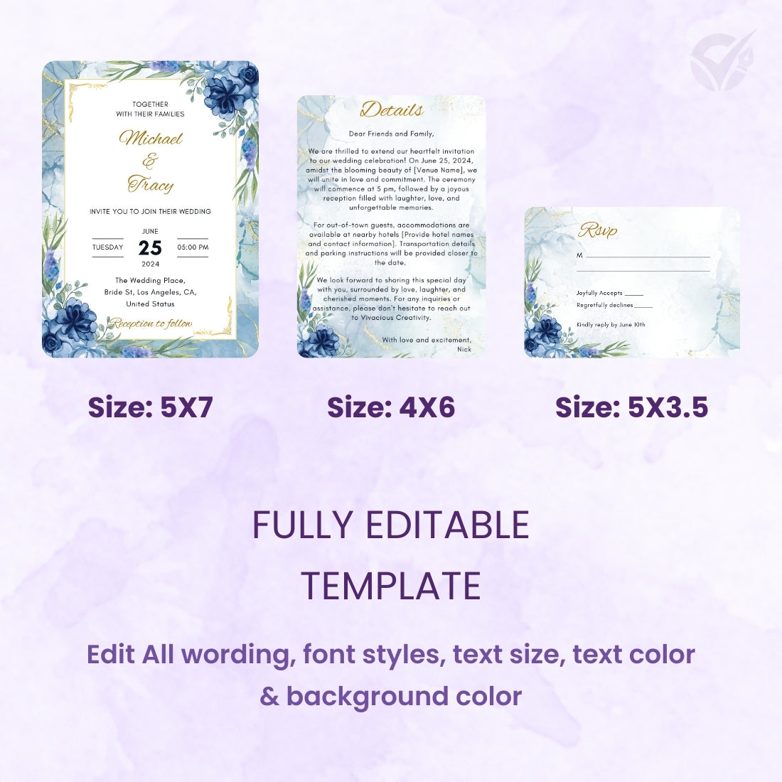 Wedding Invitations With RSVP 3 Editable Canva Templates Main Card, RSVP & Details Card Instant Digital Download