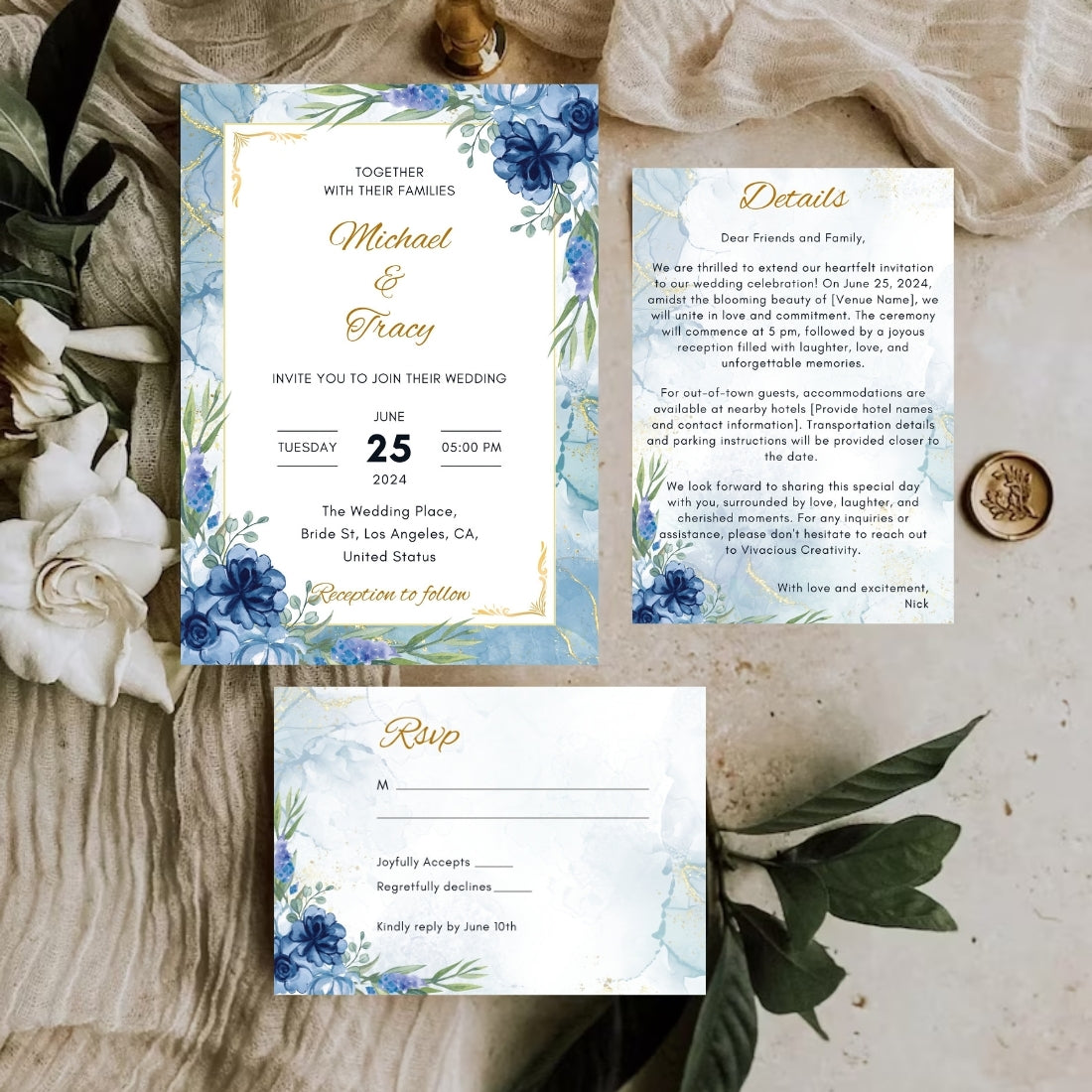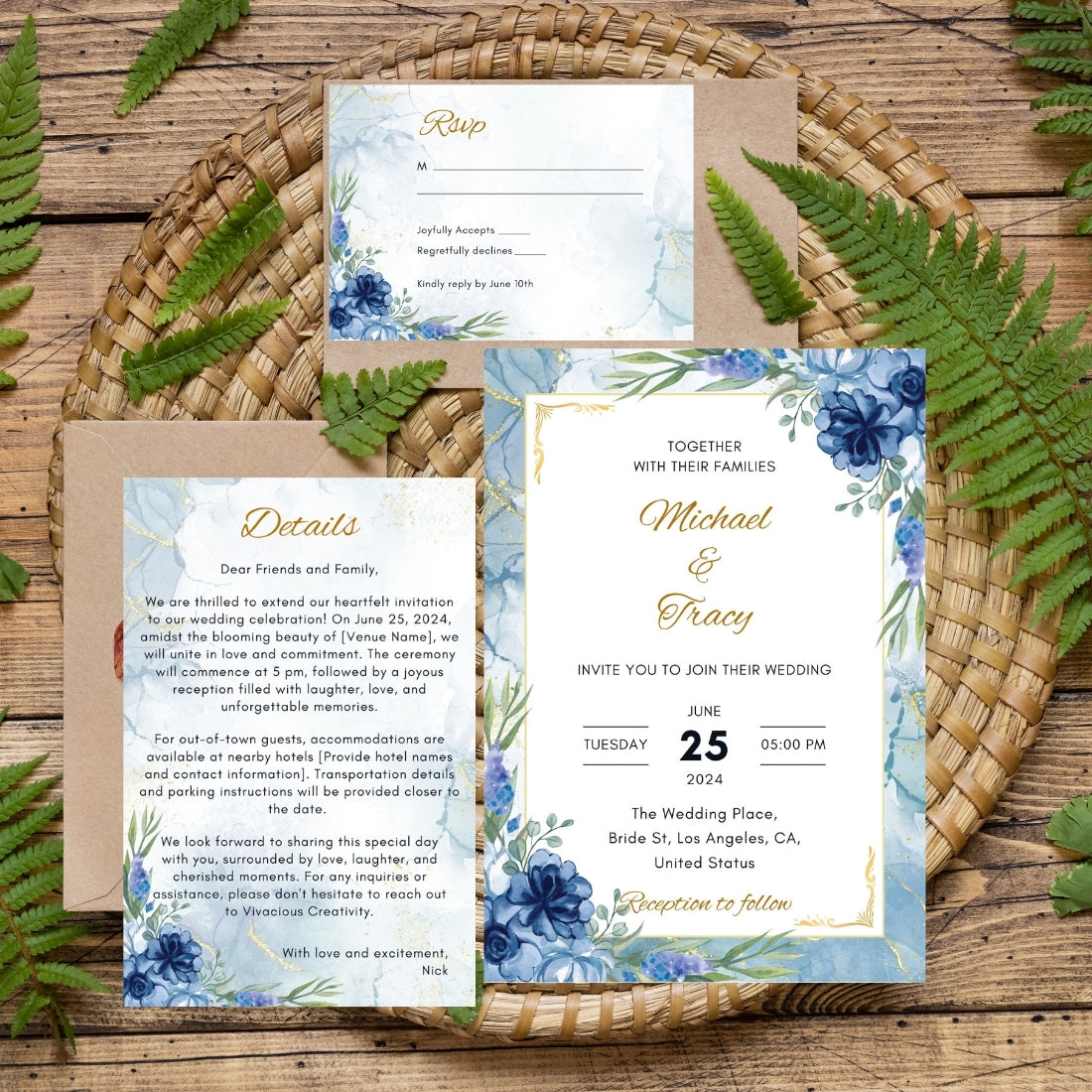 Plan your big day with ease and elegance using this 3-piece Wedding Invitation Suite!